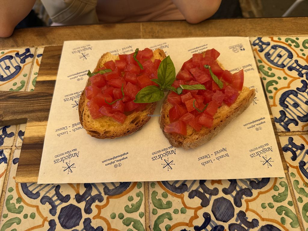 Der Burger Vegan Dream war in Ordnung, das Bruschetta war lecker. Aber Achtung: wegen der Lage zahlt ihr hier 3,80 € Coperto p.P, was schon viel ist. Die Aussicht ist es aber wert, die Bedienung war freundlich und schnell und im Hintergrund lief entspannte Musik.