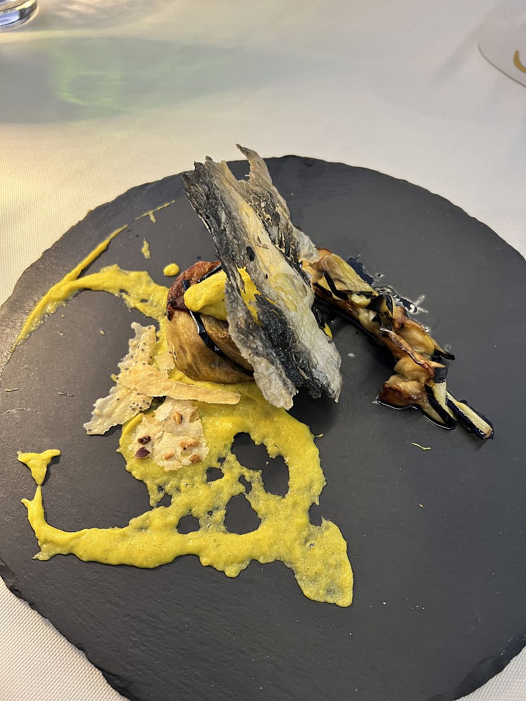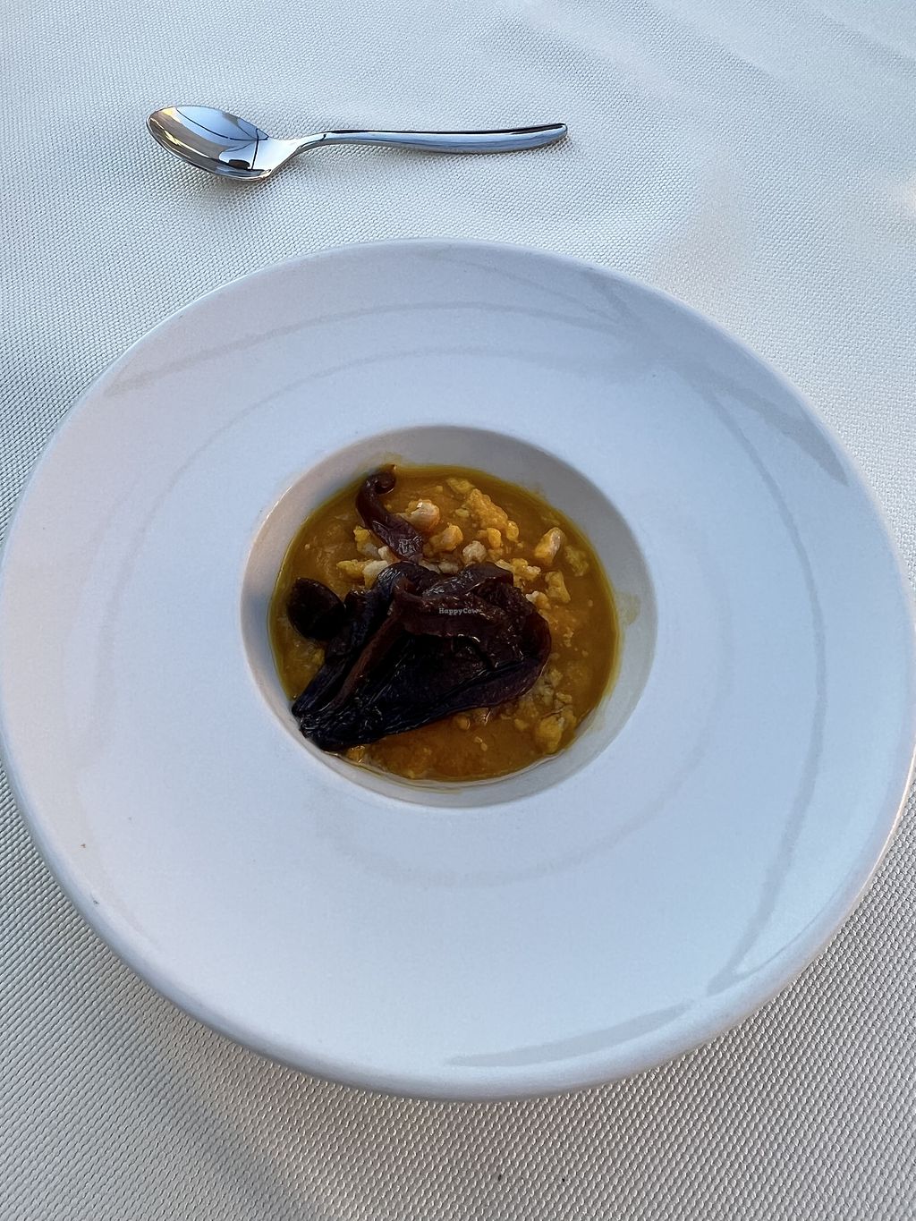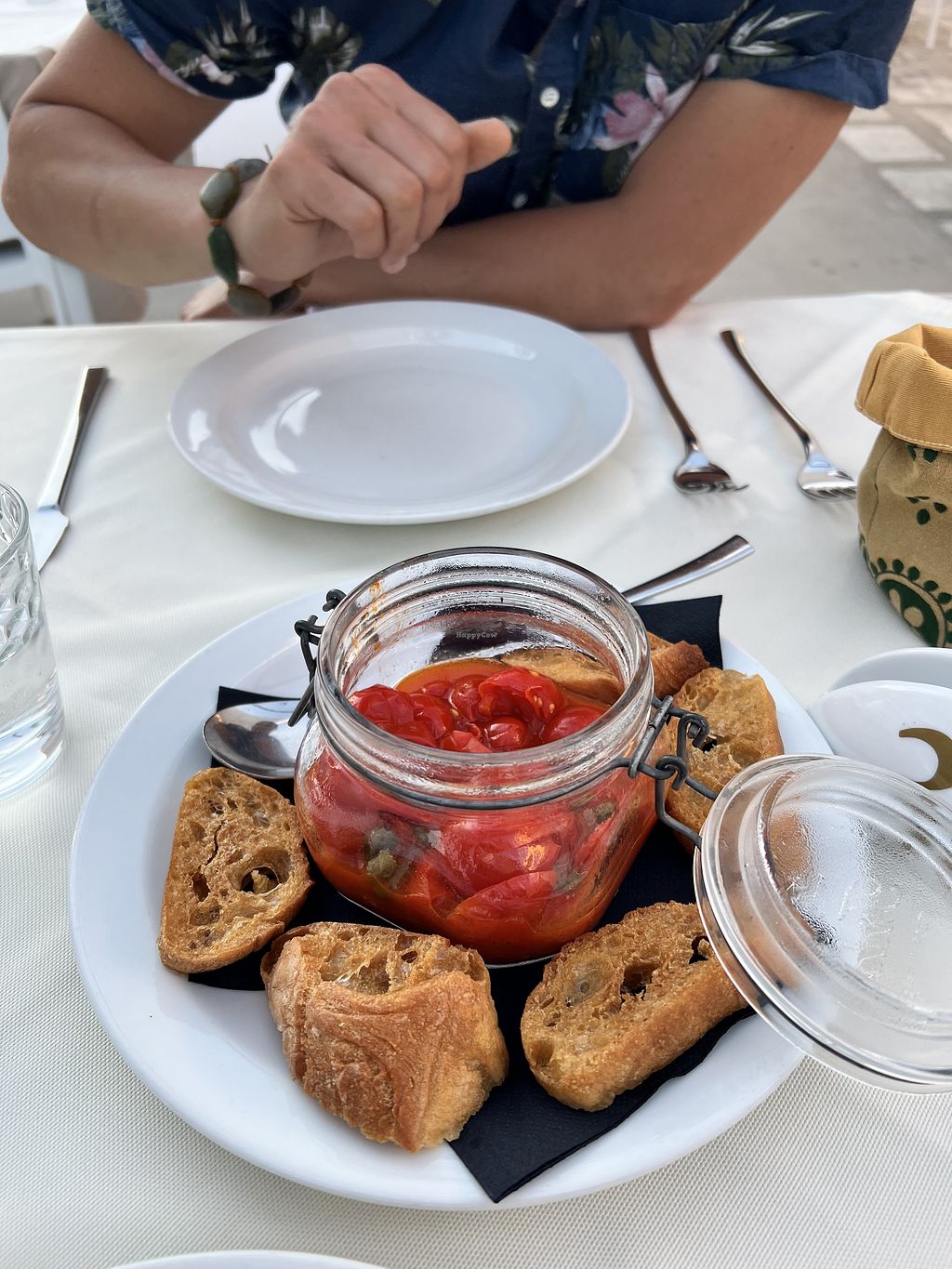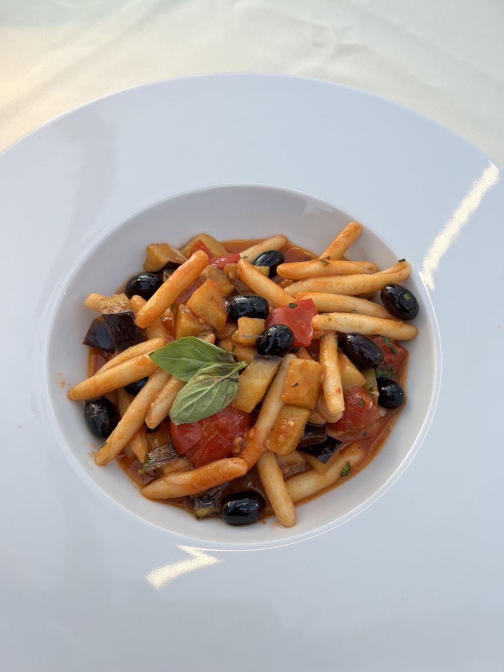 The vegan options available were just the traditional fave e cicorie, pittule, and pasta with vegetables — dishes you can find everywhere around here. The only creative dish was a zucchini and aubergine cream with fried aubergine, called zuccotto, which was really good. No vegan desserts available.