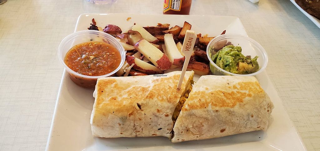 Vegan Breakfast Burrito w/sliced red potatoes, salsa. & guac