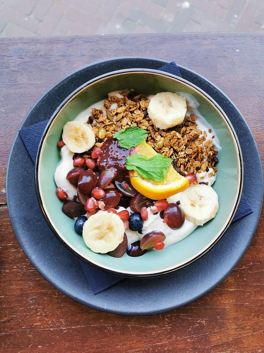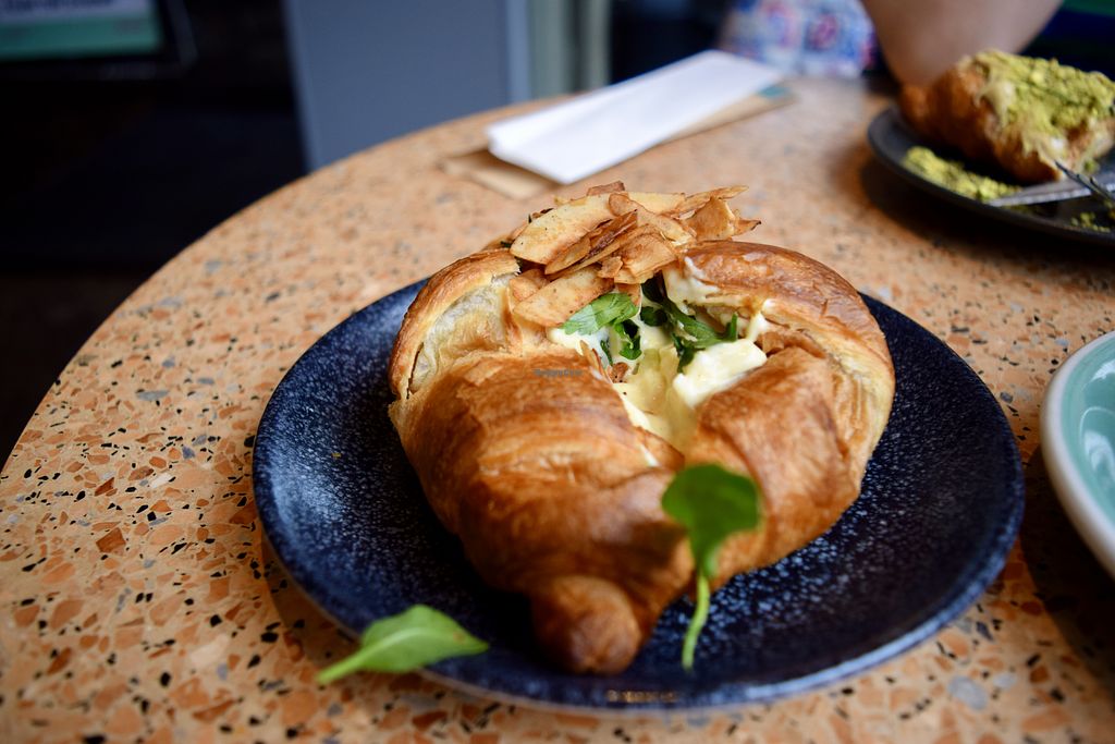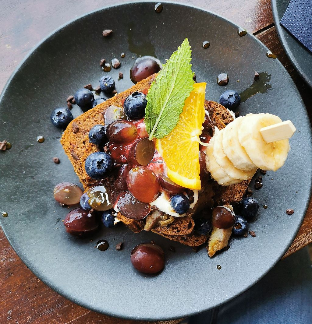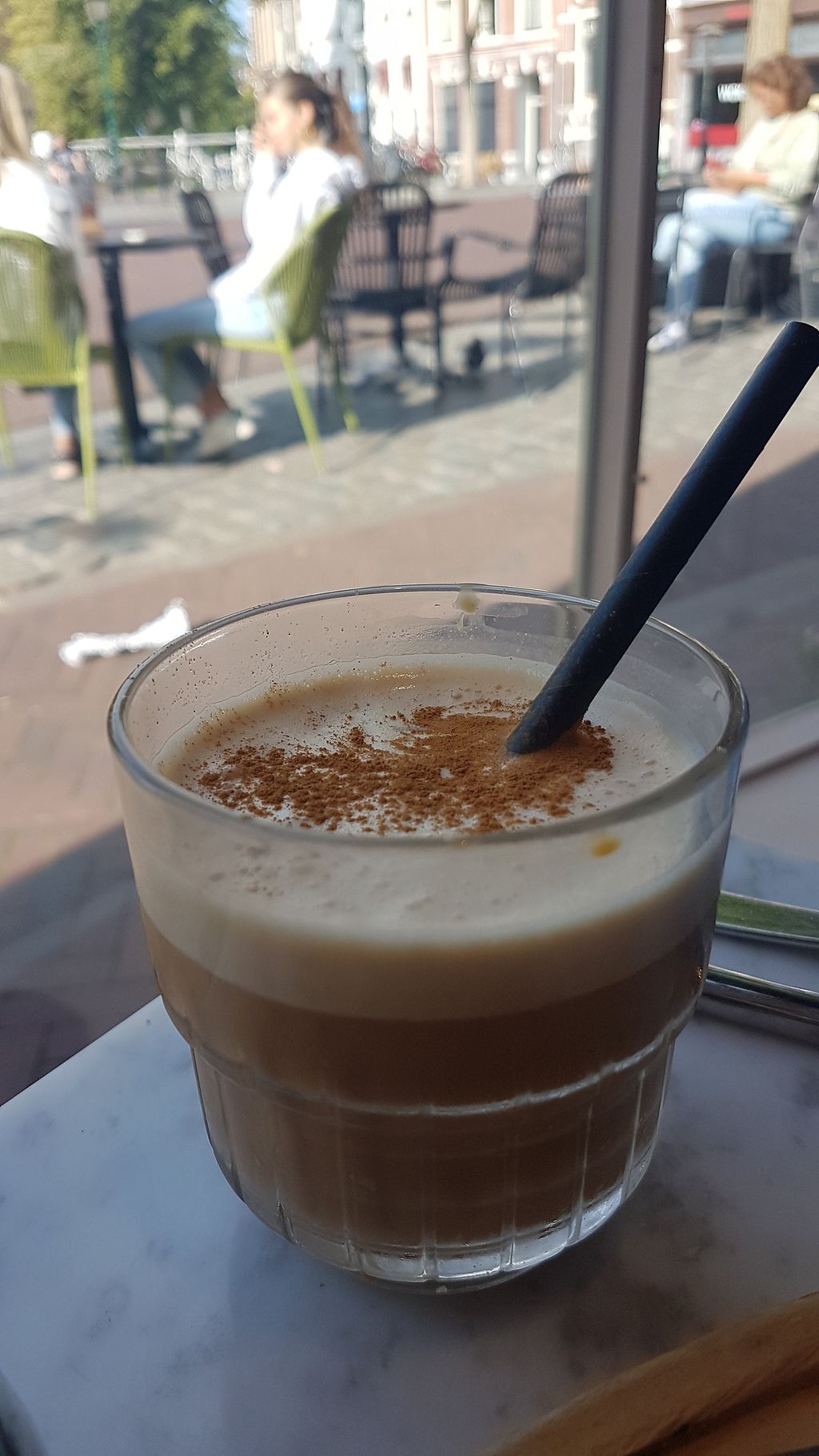 Matcha latte with soy milk and vegan raw cakes. Delicious!