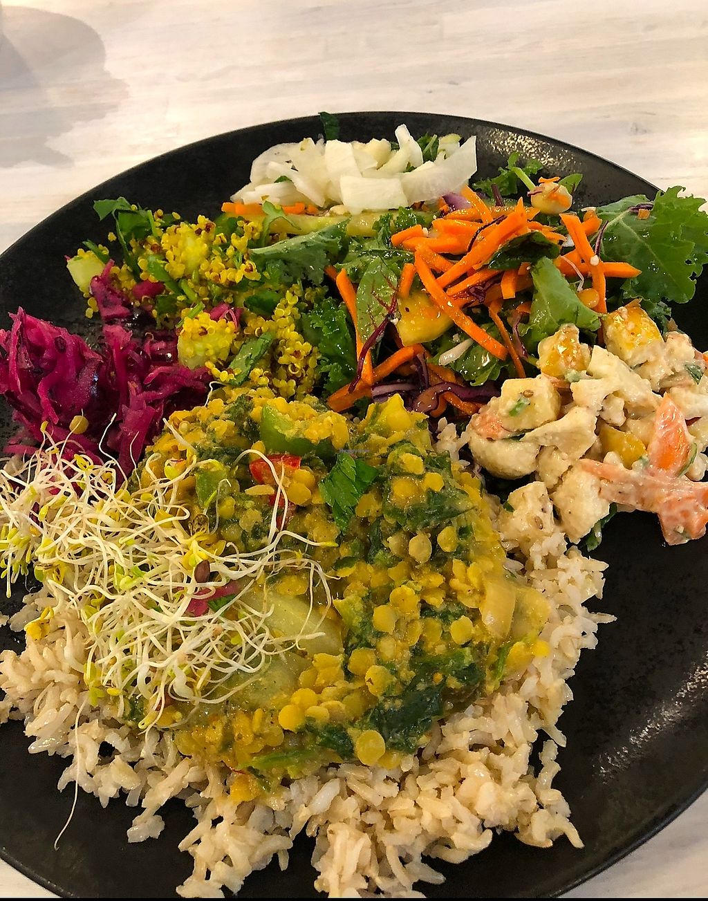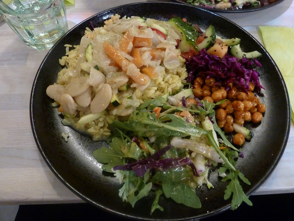 The concept is simple of just choosing the size of the meal of the day (either regular or big). The plate contains a warm dish and a few cold ones and you can top everything with seeds and nuts. Every dish on the plate tasted great and very fresh. Even the normal size was filling and was good value for money. Will definitely go again!