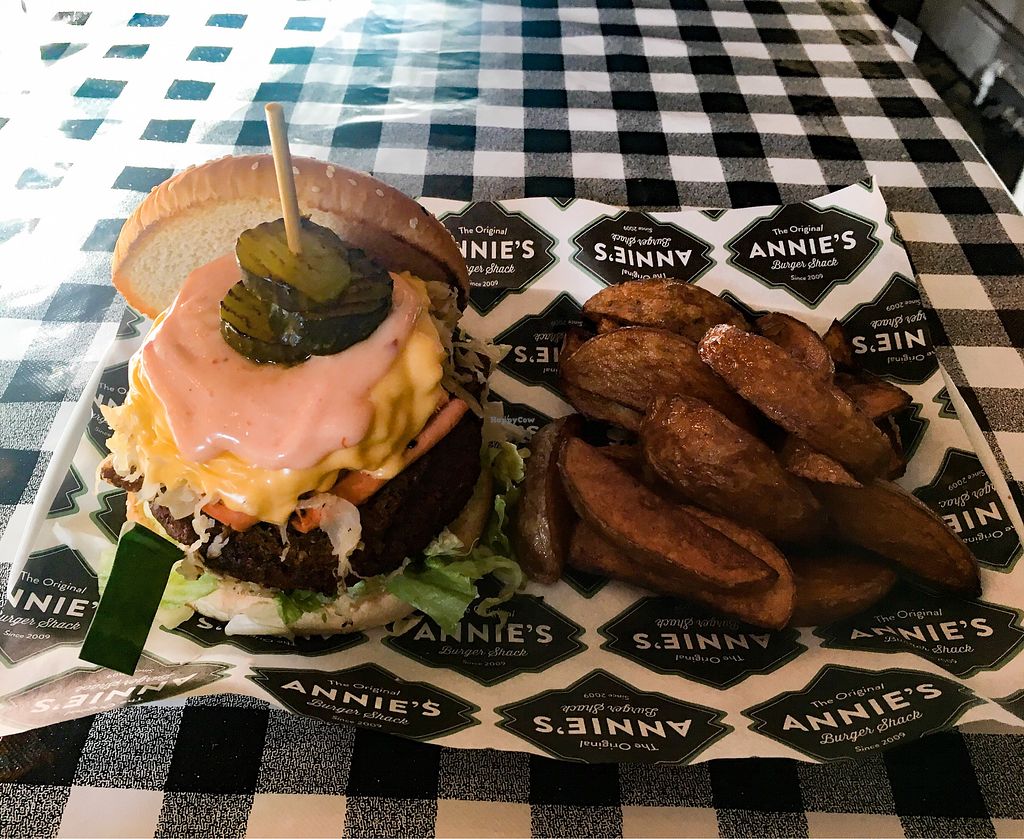 Serves meat, vegan options available. Sister restaurant to the famous Annie's in Nottingham with over 30 different vegan burgers. Reported closed October 2020.