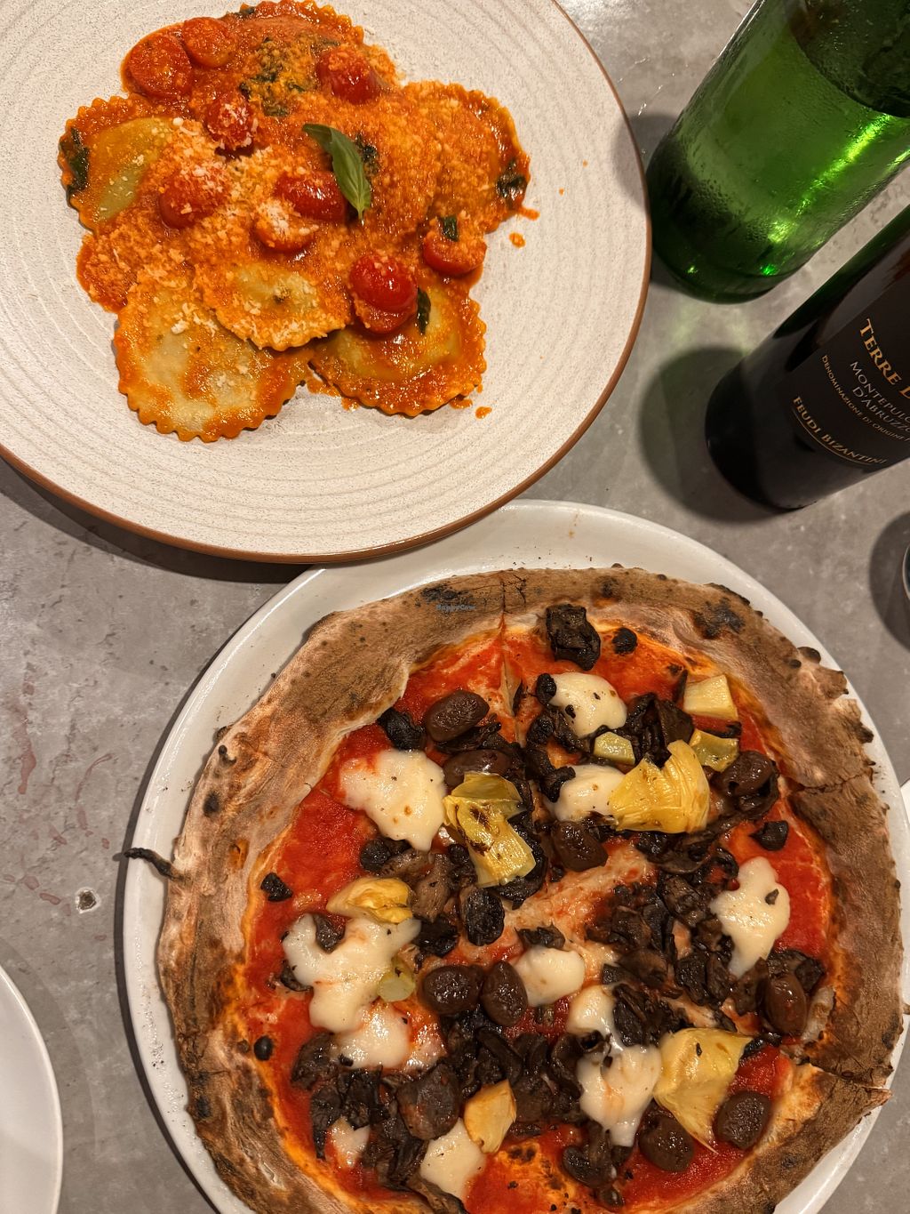 Half Capricciosa / Half Parmigiana Vegan Pizza