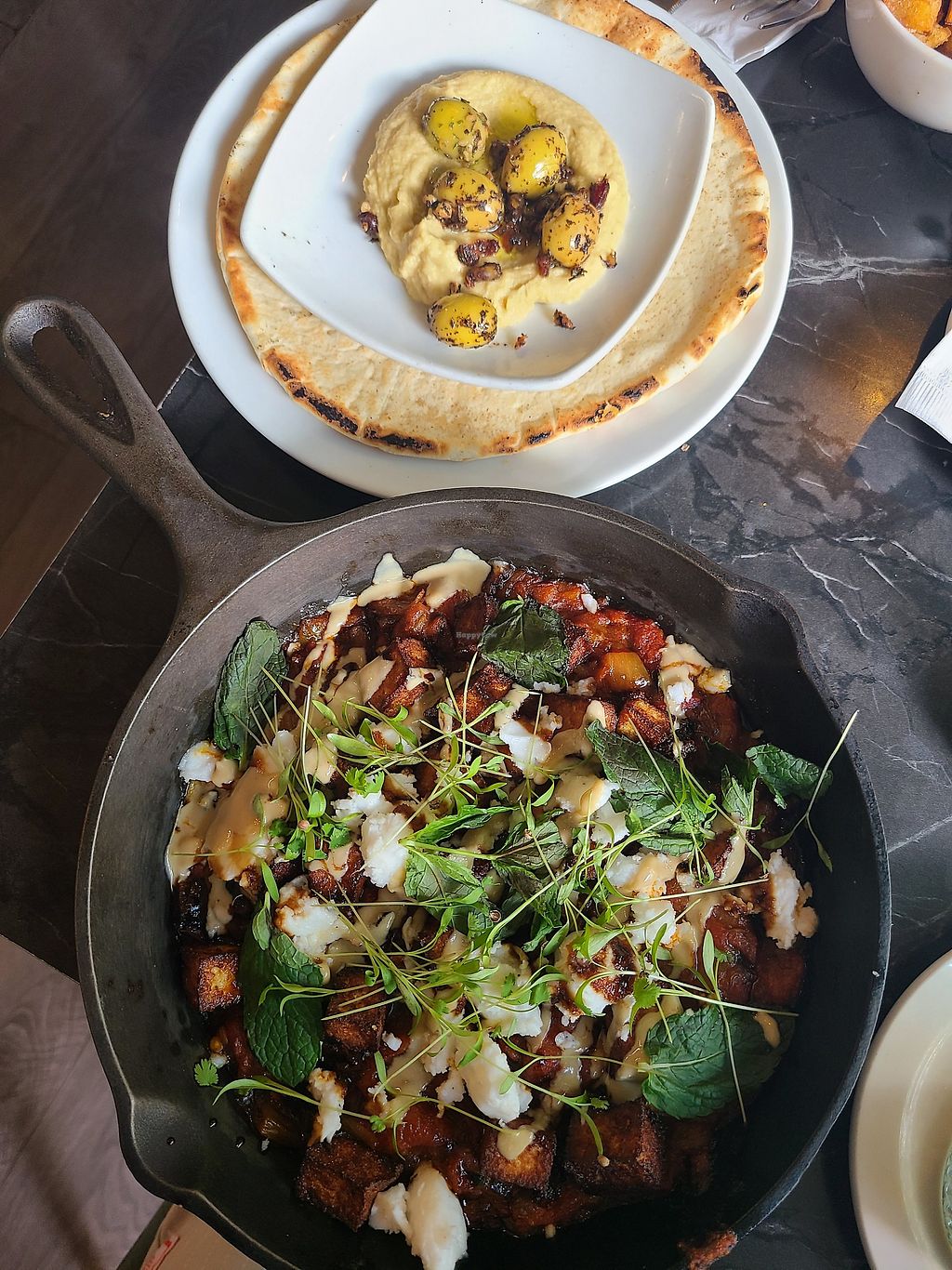 Serves meat, vegan options available. Offers dishes inspired by world cuisines, including vegan shakshuka and eggplant croquettes. Also provides plant-based milk options for beverages. Open Mon 9:00am-4:00pm, Tue-Sat 9:00am-3:00pm, Sun 9:00am-4:00pm.