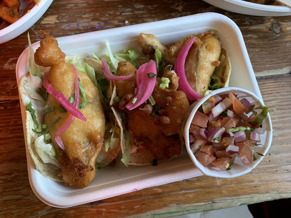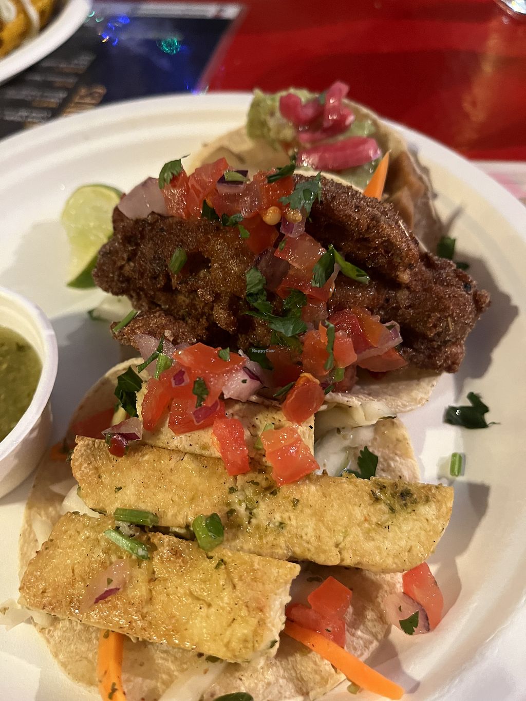 Read moreAn all vegan menu is always a glorious experience to navigate. To share, we ordered nachos with guacamole, which was as pleasant as expected. I ordered the banana blossom (fish) tacos for main and they were the nicest tacos I’ve had since going vegan. It’s the first time I’ve tried banana blossom and I was eager to order it. It was so deliciously crisp and, combined with all other toppings and sauce it was just divine. So indulgent. My boyfriend had seitan (beef) quesadillas which I couldn’t help but gave a little try myself. It was quite possibly even better than my tacos! They had a really good level of spice too. I saw on the menu that the seitan quesadillas had won a street food award and honestly it’s not surprising. They were extremely tasty and well made. I feel like the cooks here have a real passion for tasty vegan food and it shows in the delicious dishes.
