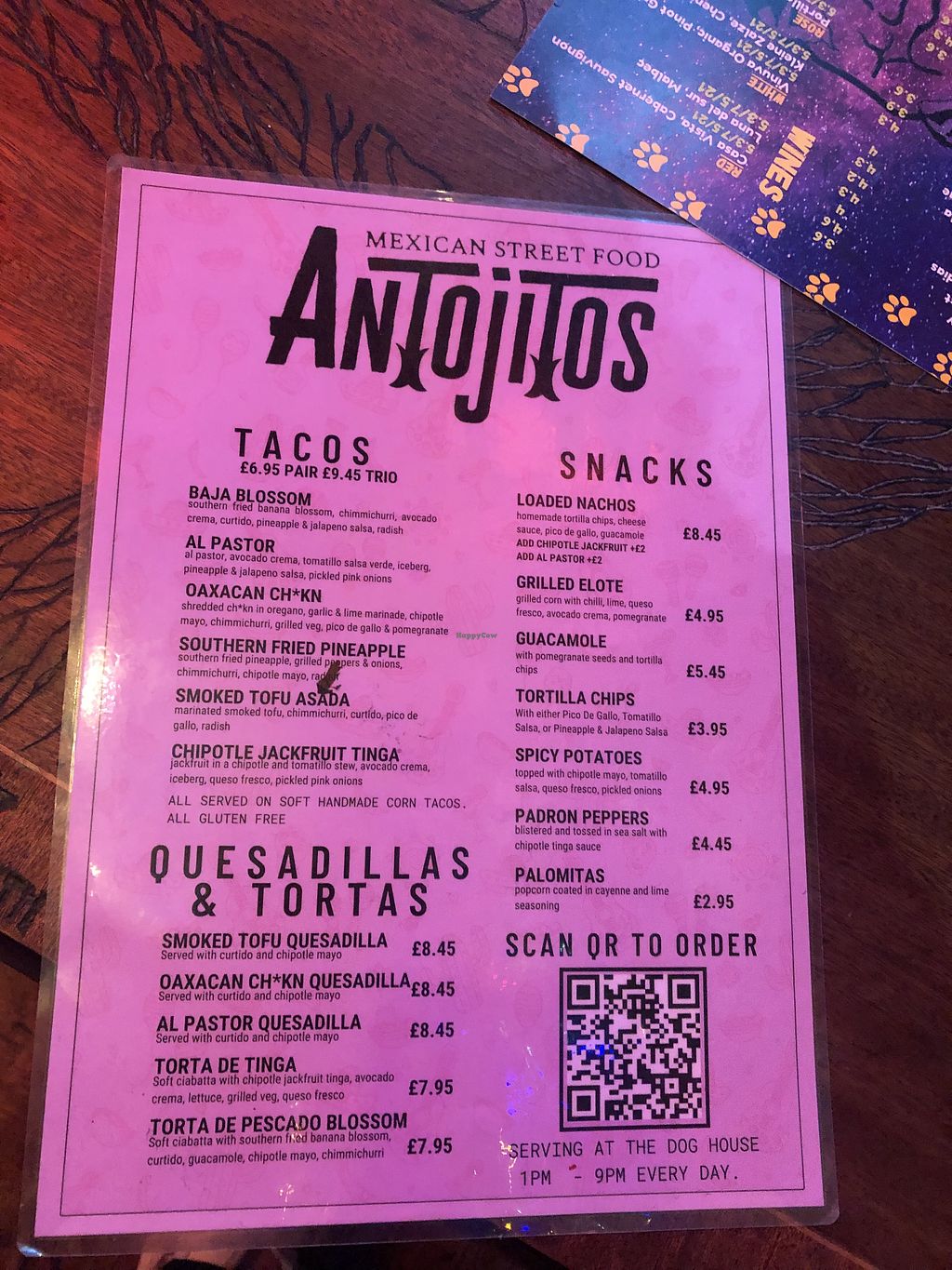 Mexican street food with variety of small plates and main dishes such as quesadillas, tacos, empanadas and nachos. Operating out of The Dog House pub, which is also vegan. Rotating daily specials. Opening hours are reported to be unreliable, check ahead. Reported closed March 2024.