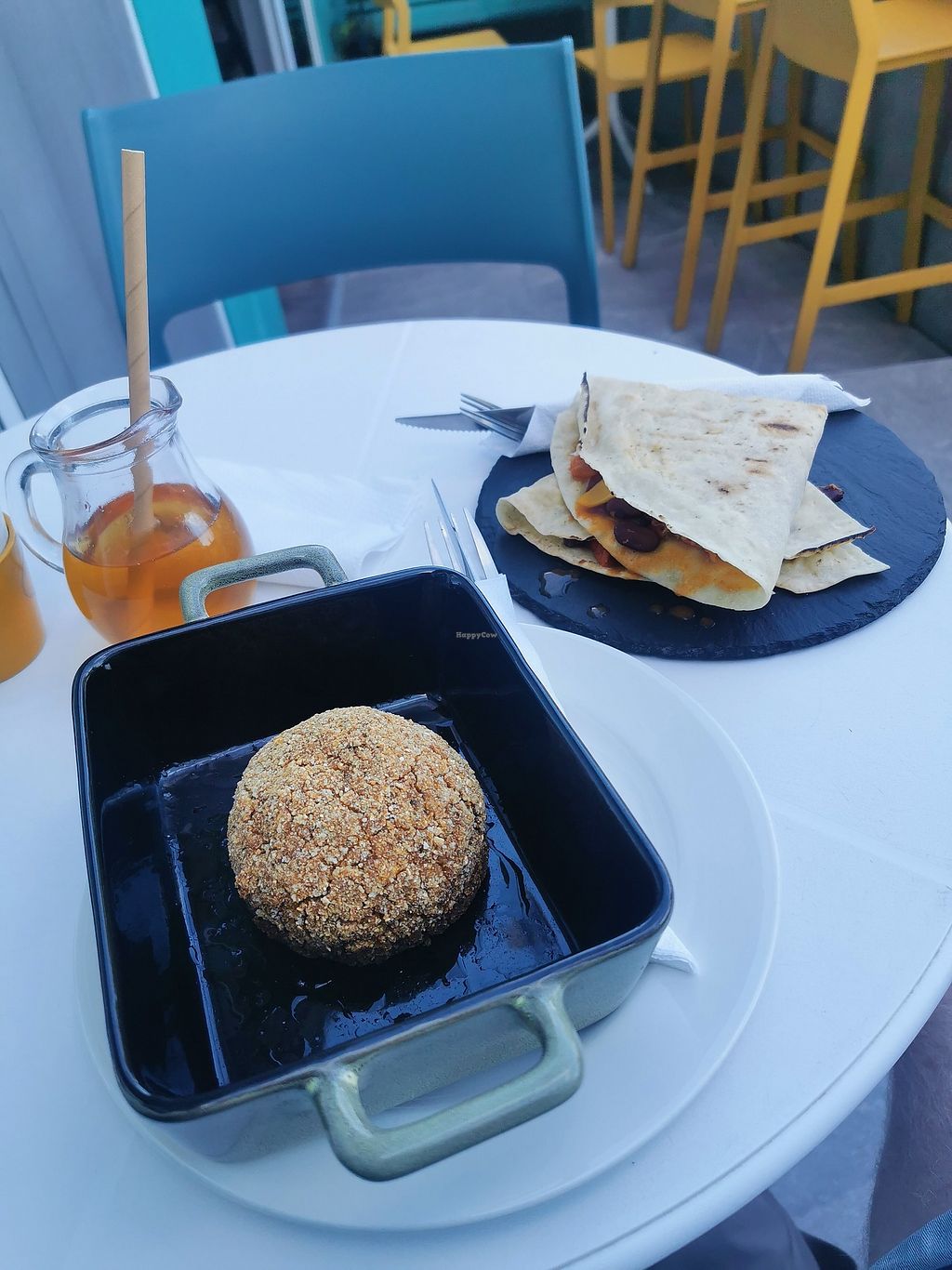 I ordered an arancini, a pizza and a raw orange cheesecake.