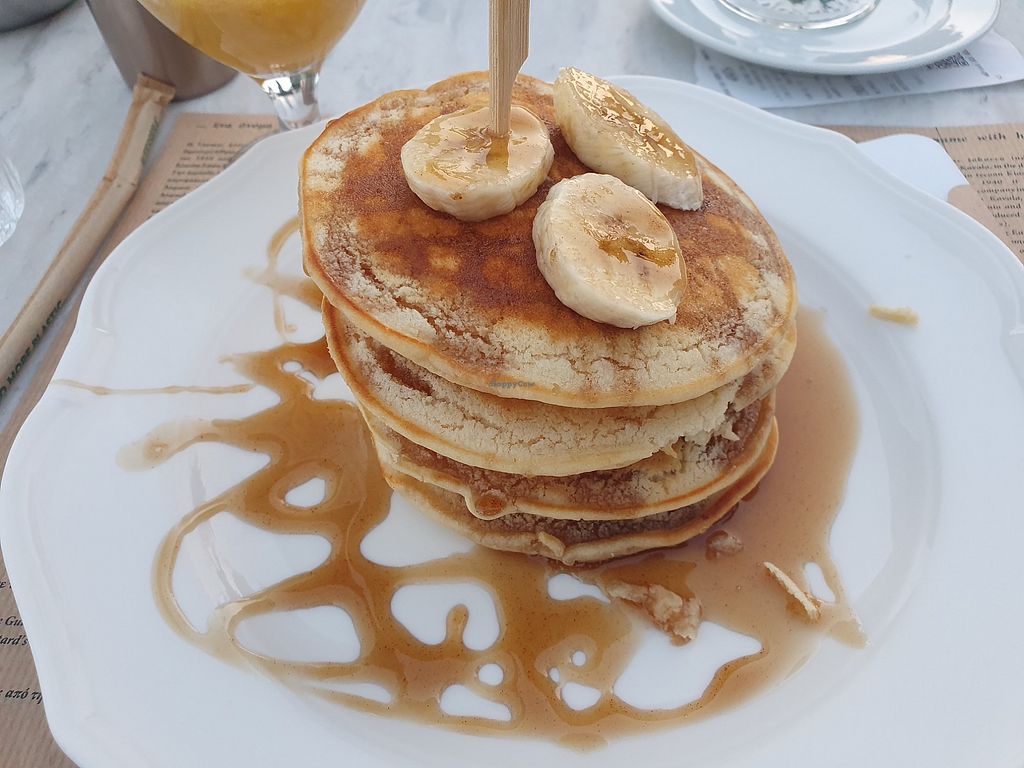 The second time we had only a salad and jumped directly to the vegan pancakes. They had a baking powdery texture (they tasted okay and we are just glad to find vegan food in Kavala!) and were rightfully declared as main dish.😉