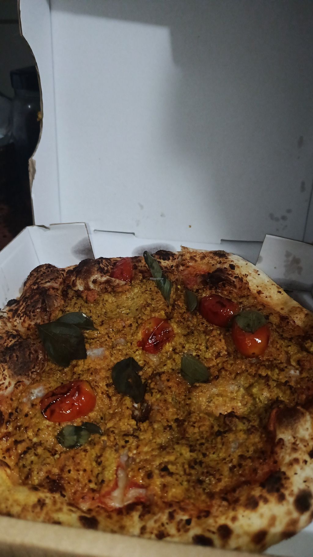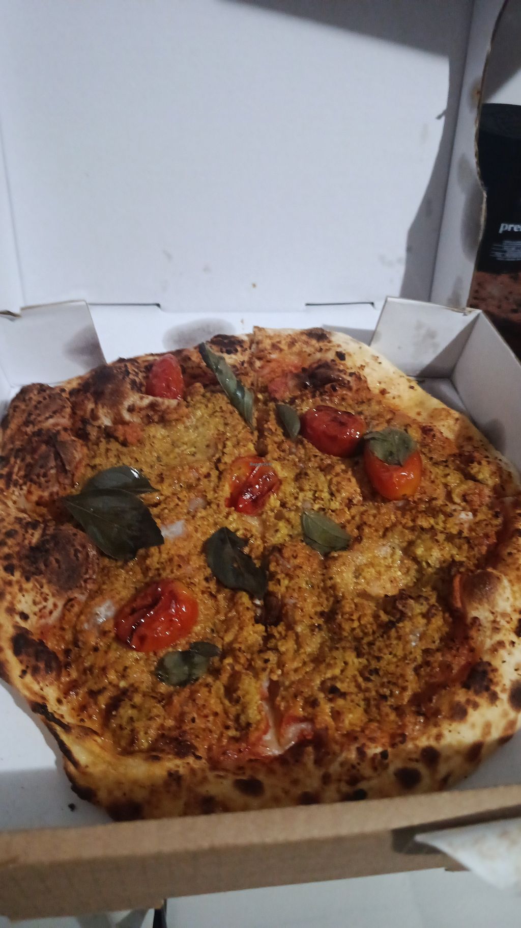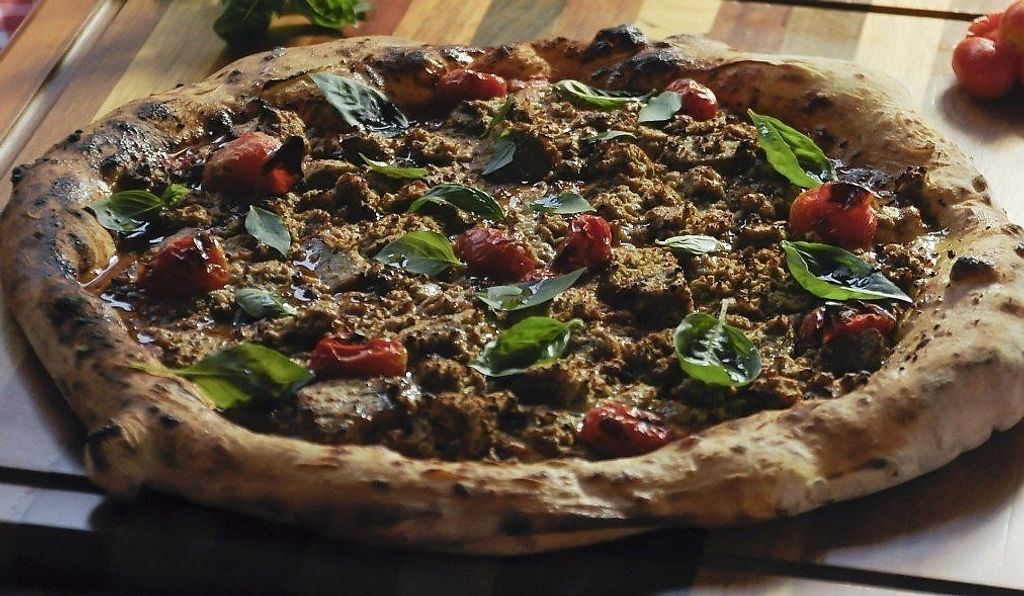 Serves meat, vegan options available. Pizza delivery with a dedicated vegan menu. Vegan selection includes zucchini & garlic pizza, broccoli & garlic pizza, cherry tomato & arugula confit pizza, margherita, hearts of palm & chimichurri pizza and more. Open Tue-Sun 6:30pm-10:30pm. Closed Mon.