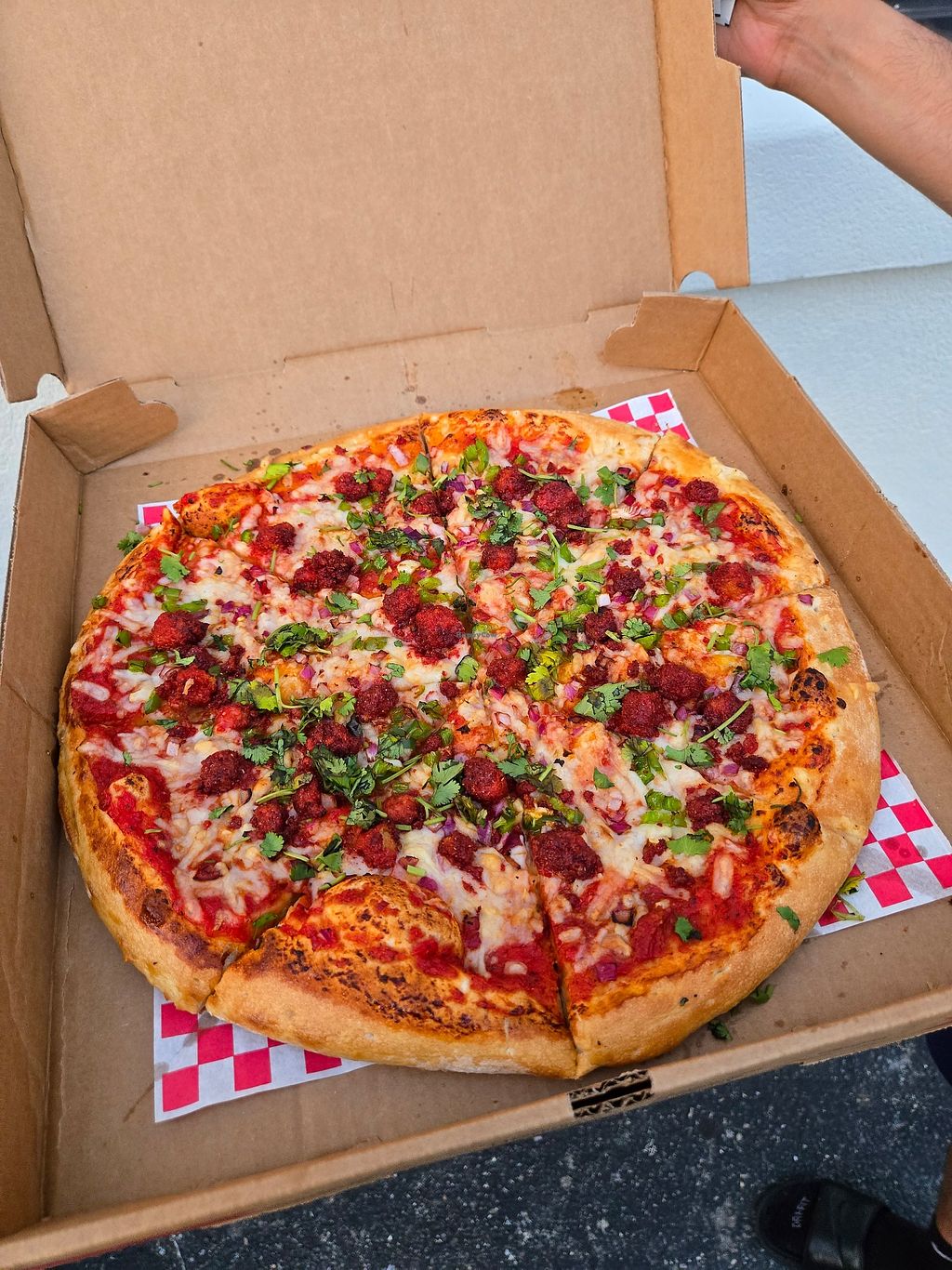 Ordered online on a Sunday evening and everything was ready promptly. The service was wonderful and food delightful! We had to put a written request in the comments for one of the pizzas and weren’t sure if they could do what we asked but were happy to see they did, very much appreciated! Would definitely come back if I’m in the area again, can’t wait to try the other vegan pizzas.