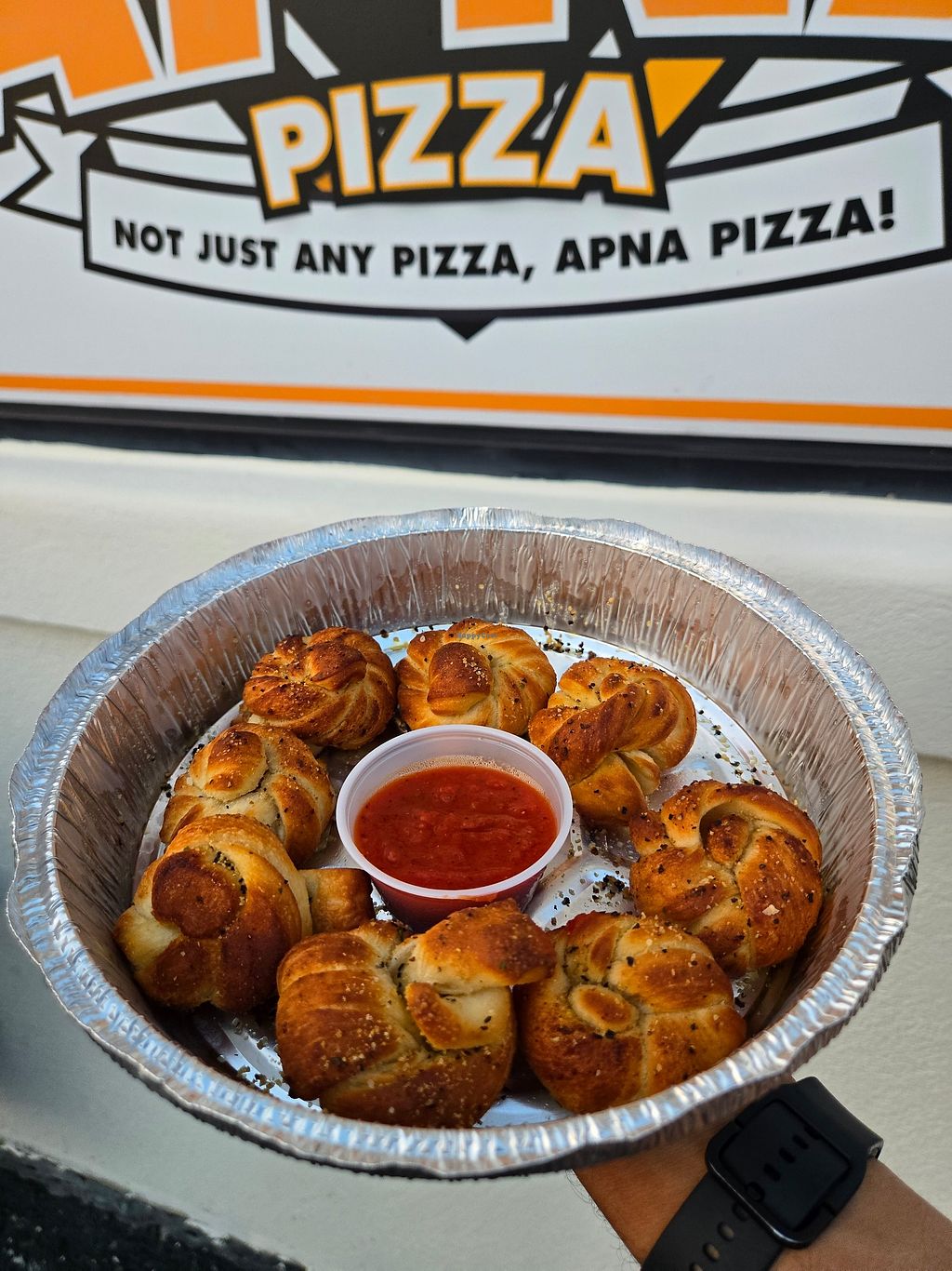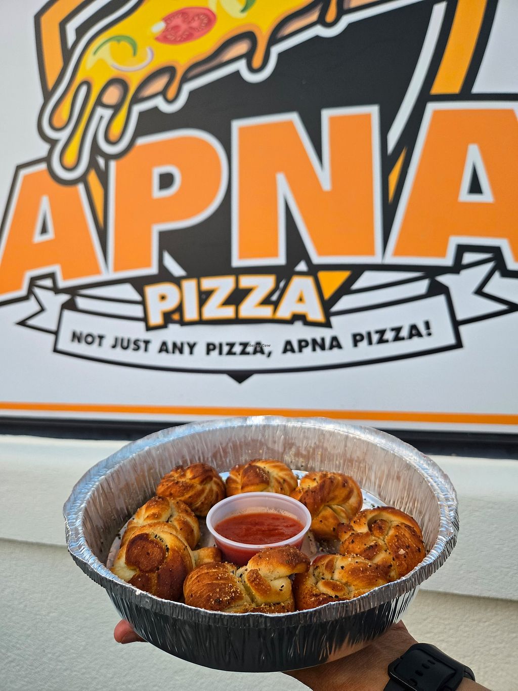 I wish I could give this place 5 stars. They combine Indian food with pizza and have a full vegan menu with so many options!! Butter chicken pizza, shahi paneer pizza, fries versions of these, garlic knots, you name it (even a vegan white sauce!). All of their sauces are made in house. We had the vegan chicken tikka pizza and vegan garlic knots with their garlic butter which is also vegan! Can't emphasize how good this was.