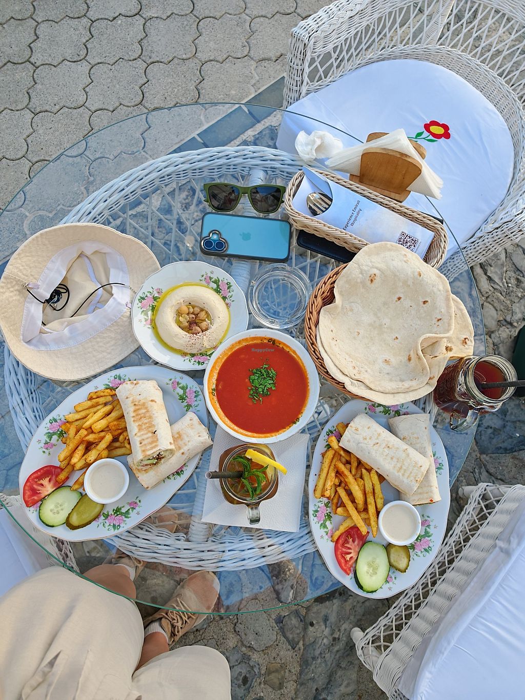 Delicious national Arabic food. We took 2 falafel wraps, hummus and beans in tomato sauce. There are no vegan desserts. If there is tahini in the dish, please ask, because our waiter told us that it contains milk.