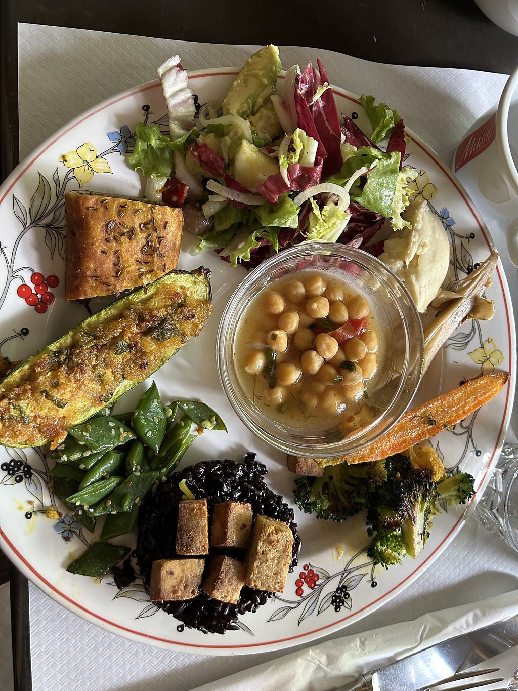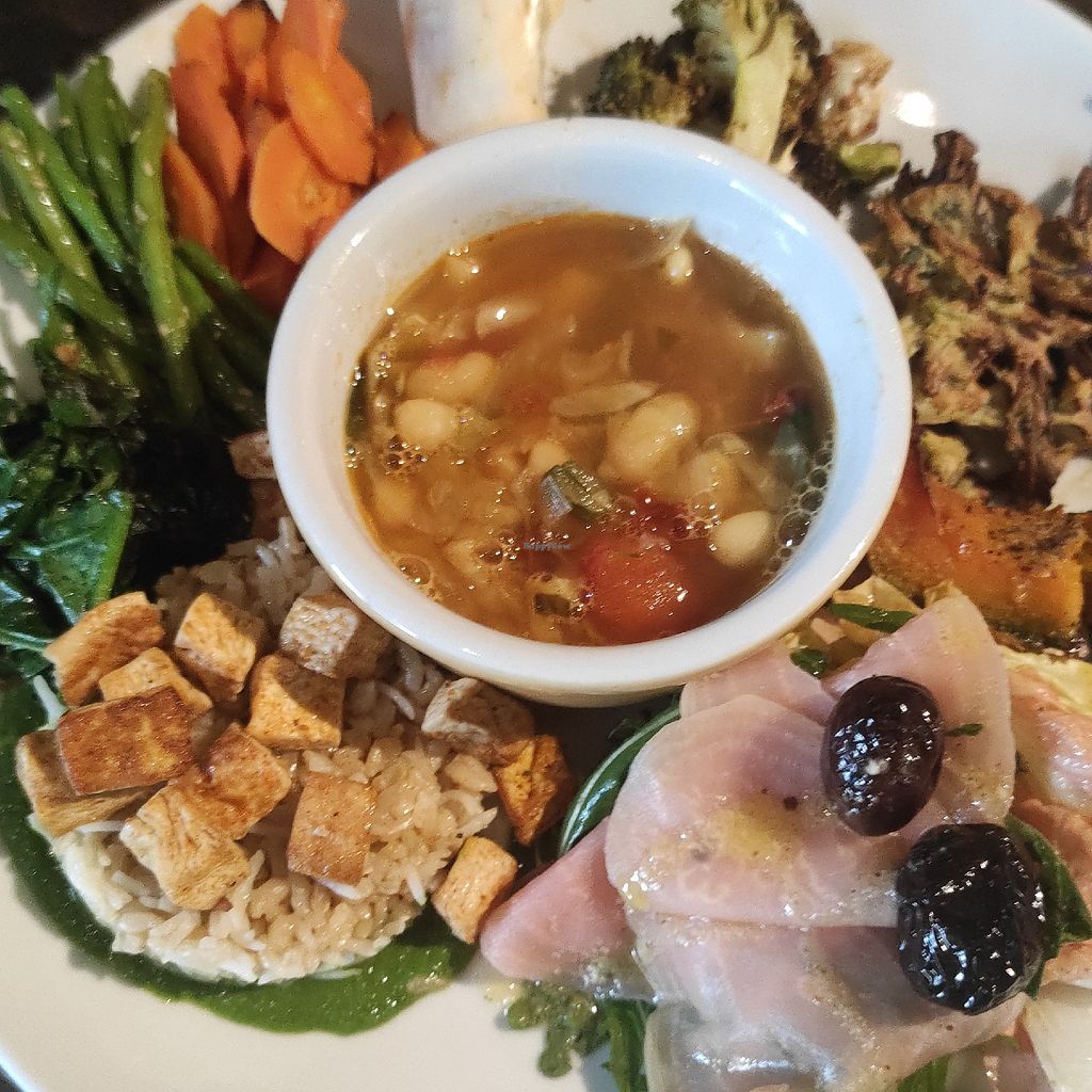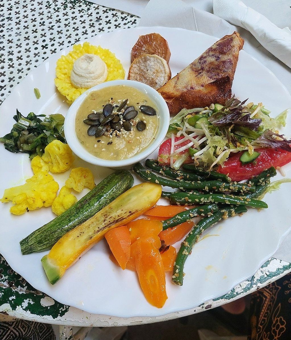 C'è sempre anche un piatto composto vegano che varia come ispirazione...ispirandosi alle cucine del mondo..afgano, thai, indiano, spagnolo,...