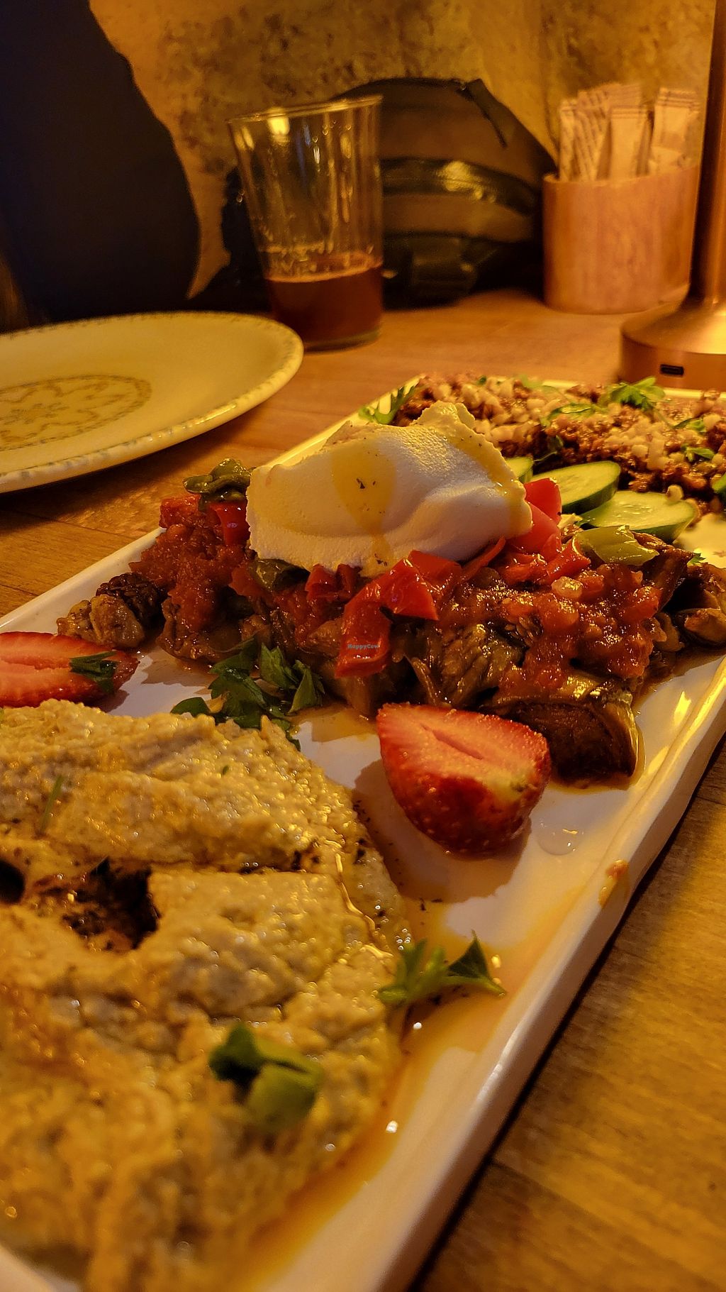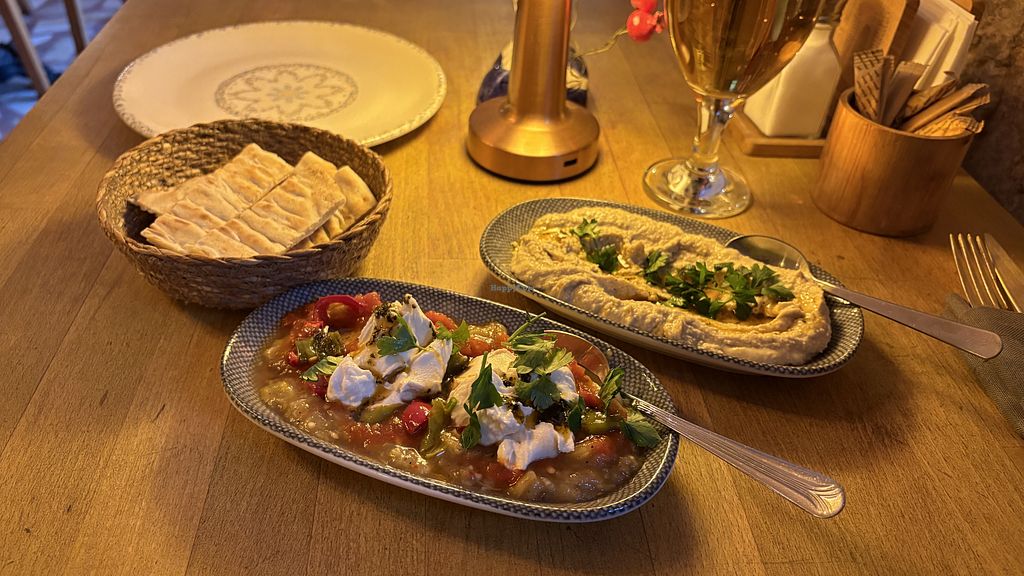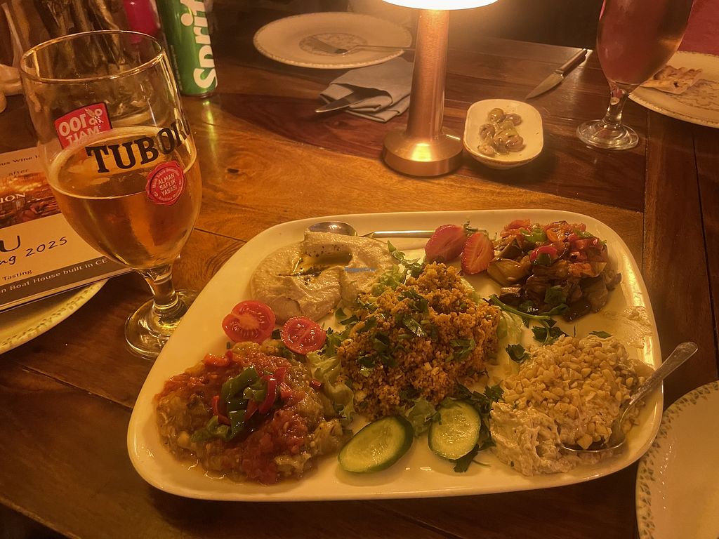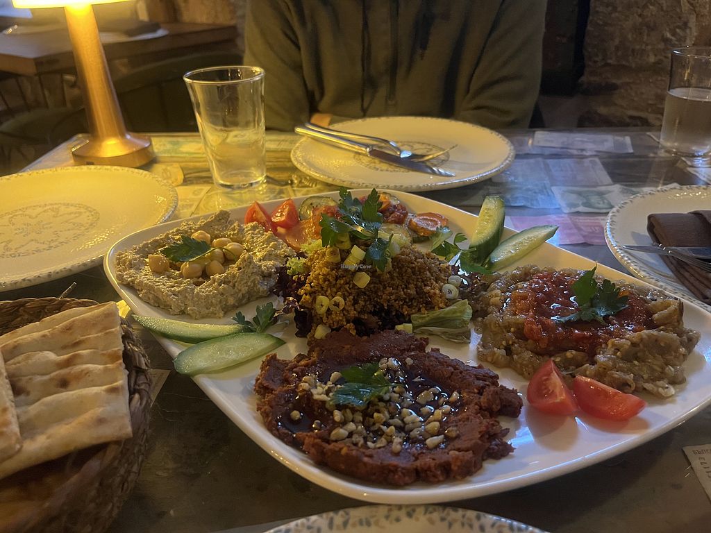 Beautiful restaurant, food is lovely and waiters are nice. Vegan options are clearly marked which was nice. Really enjoyed our mezze platter (5 items)