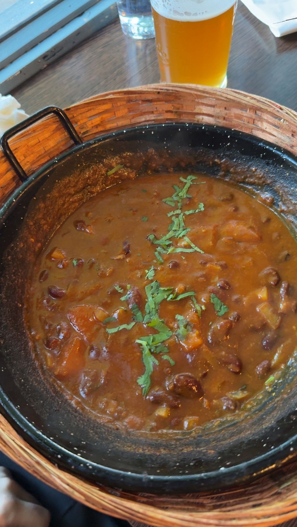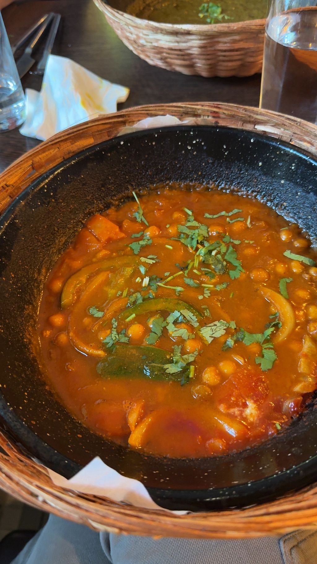 Vegetable Madras, Vegetable Dhansak, two types of rice and naan