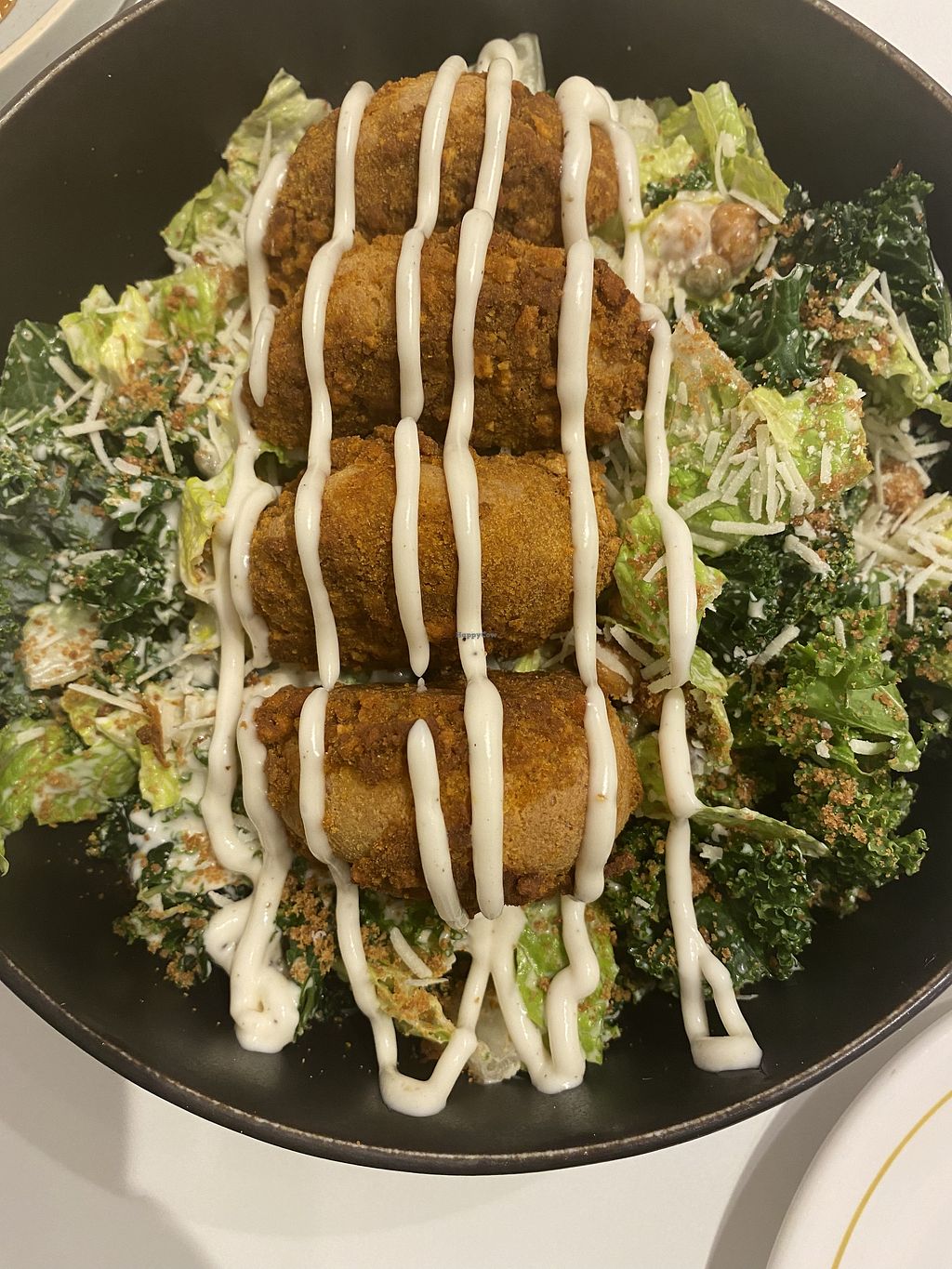 Breakfast sandwich with potatoes, fresh juice of the day (watermelon +…