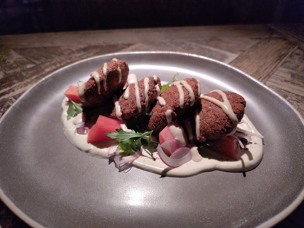 Serves meat, vegan options available. Lebanese fusion restaurant offering vegan dishes such as fattoush salad, turmeric hummus with black olives & sundried tomatoes, falafel with tahini sauce & crunchy beetroot and roasted eggplant with tahini & miso. Open Mon-Sun 13:00-01:00.