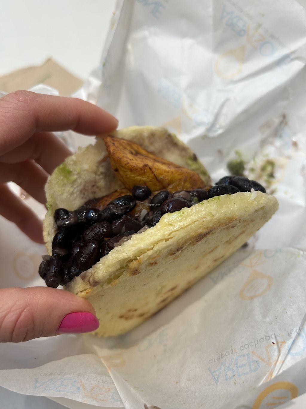 The black beans, sweet plantains and avocado arepa was delicious and filling but not oily or fried. Order was ready via website, reasonable price, nice atmosphere and music for Venezuelan food. Lots of veggie options with cheese-based GF dishes.