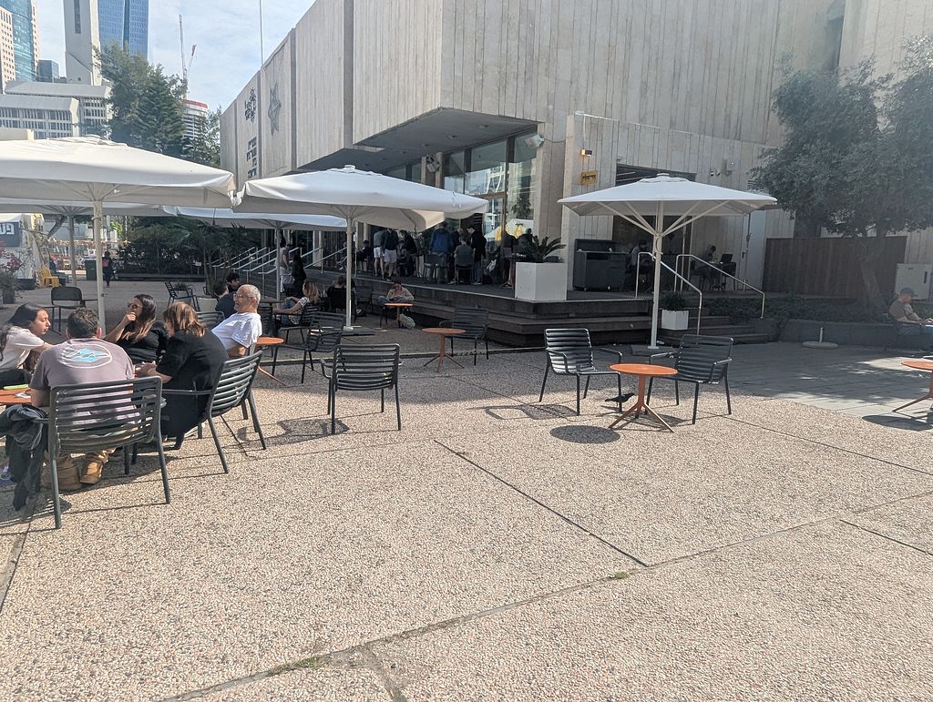 Being located at the entrance for Beit Ariela Library makes this place a great location for families and individuals looking to work/study remotely. Indoor seating is scarce, but they have plenty of outside tables.