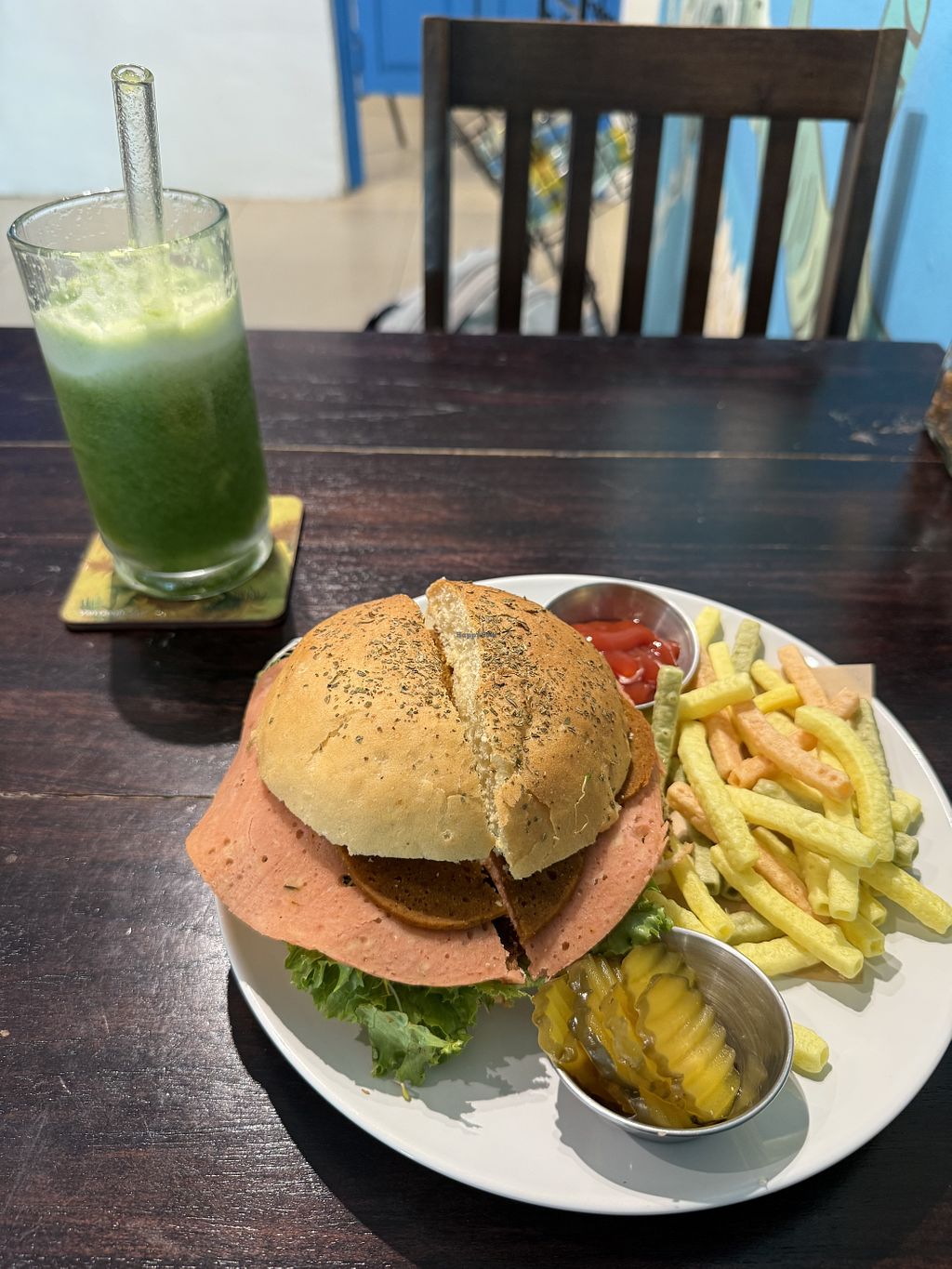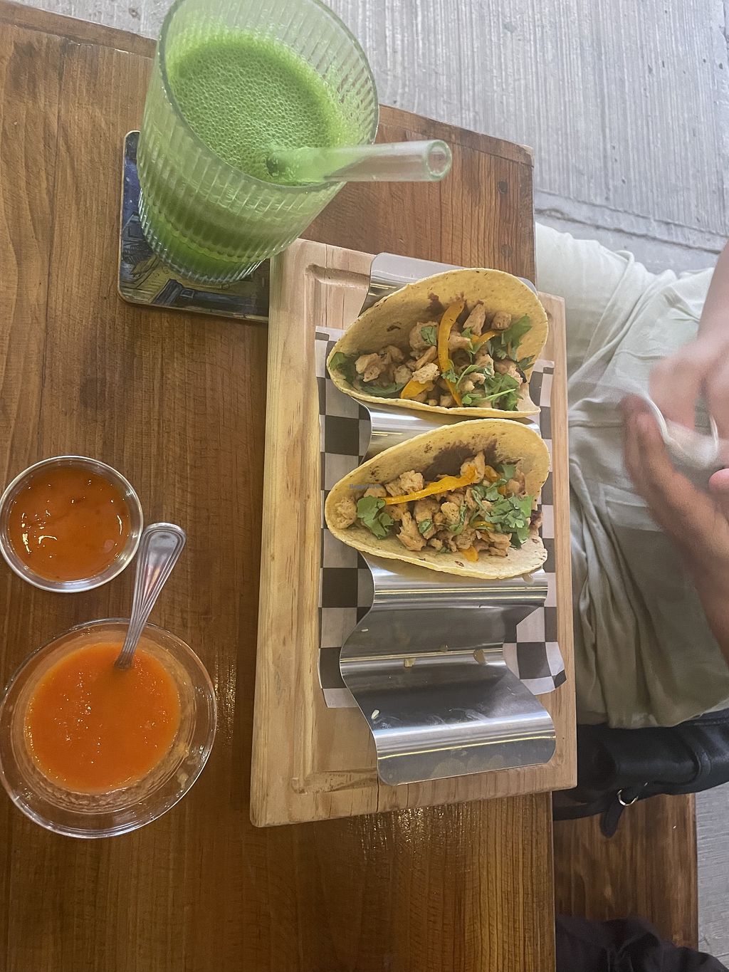 Only vegan spot in town and the owners are doctors who are vegan as well! Indoor and outdoor seating. There are a lot of options to choose from (menu in the photos).