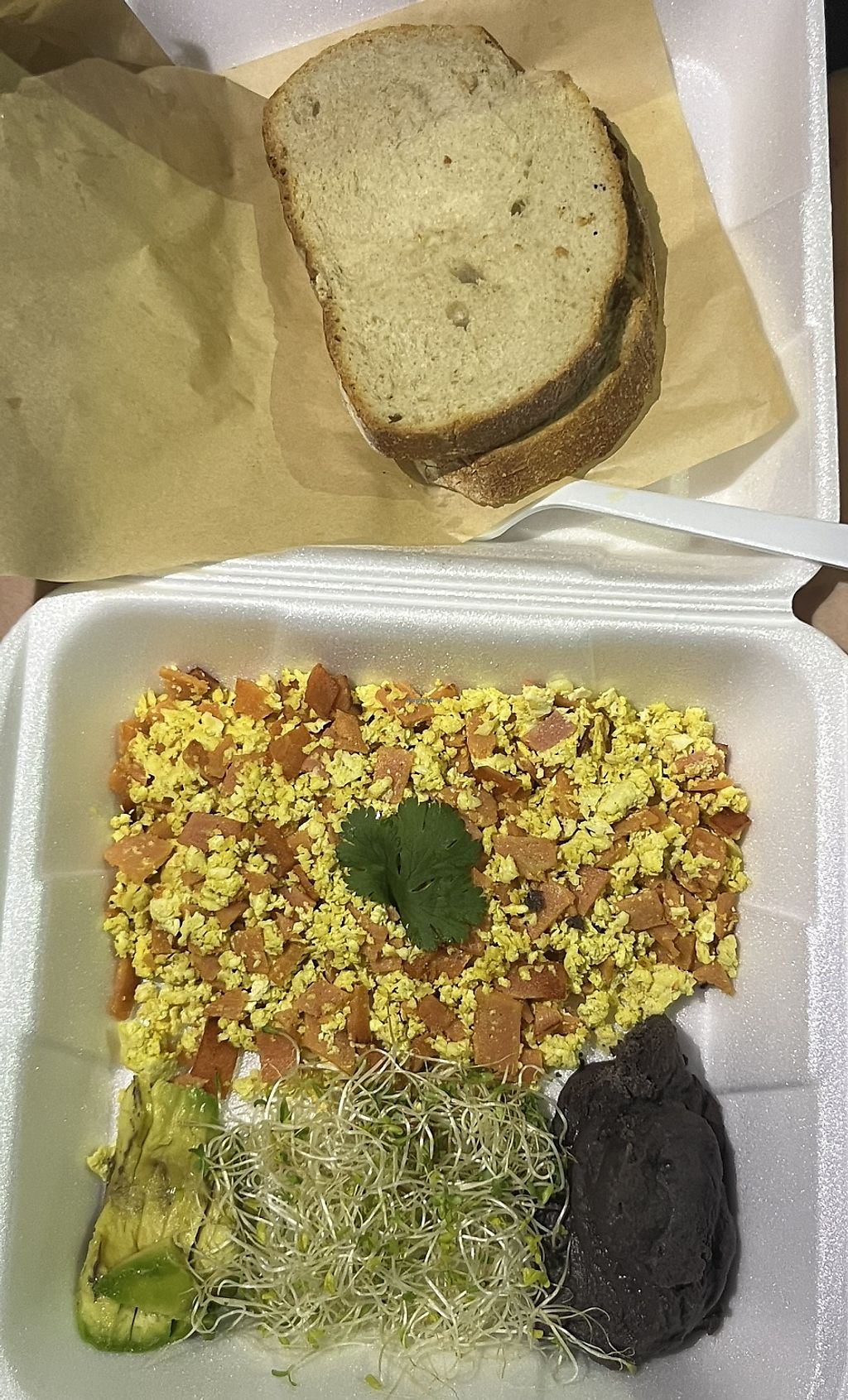 Vegan restaurant offering tacos, chilaquiles, toasts, sandwiches, pastas, burgers, wraps and more. Open Mon-Fri 3:00pm-10:00pm, Sat-Sun 9:00am-4:00pm.
