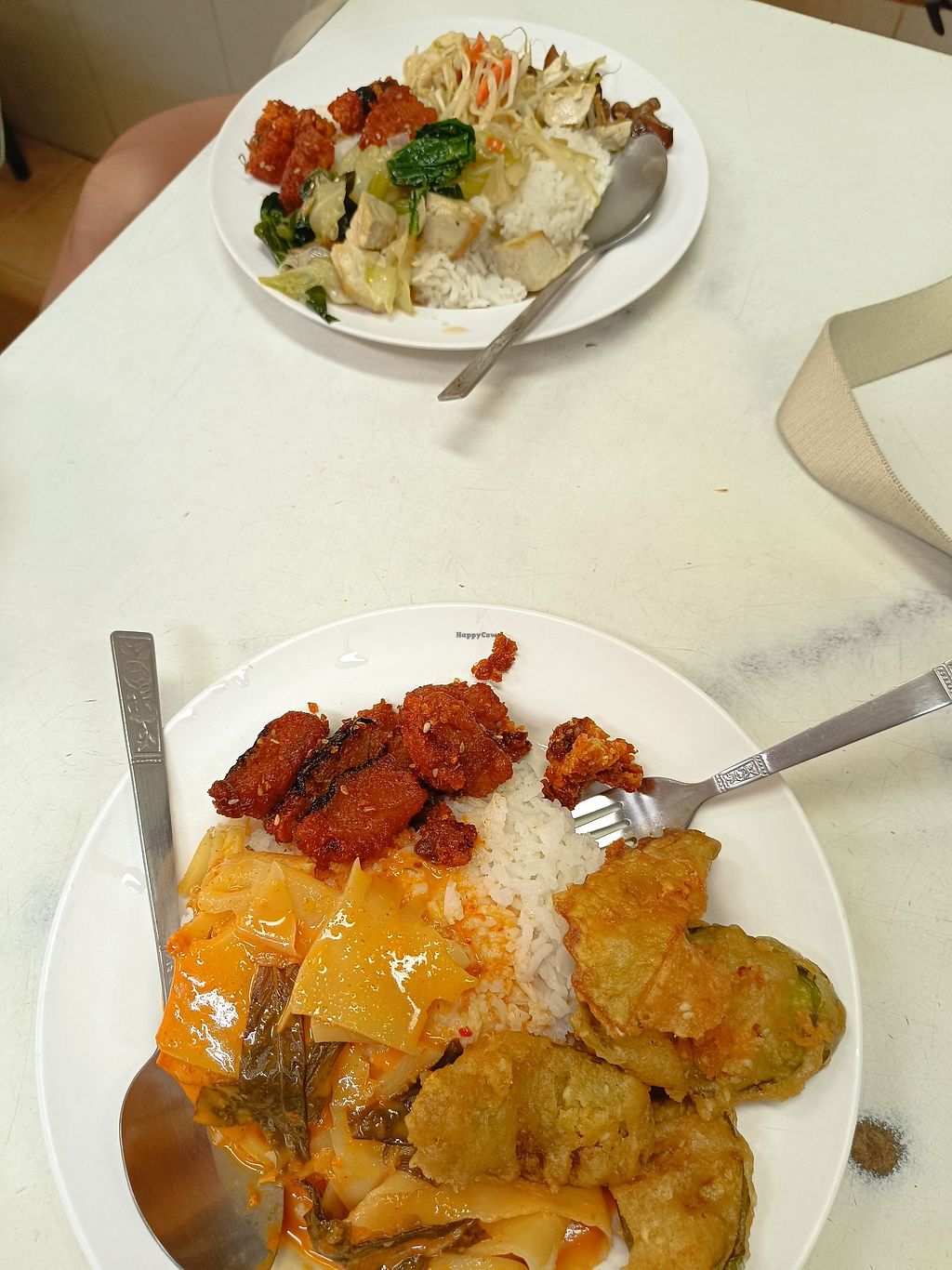 Read moreYou can get a portion of rice with three dishes added to it. I chose two curries with tofu and veggies along with one mock meat dish