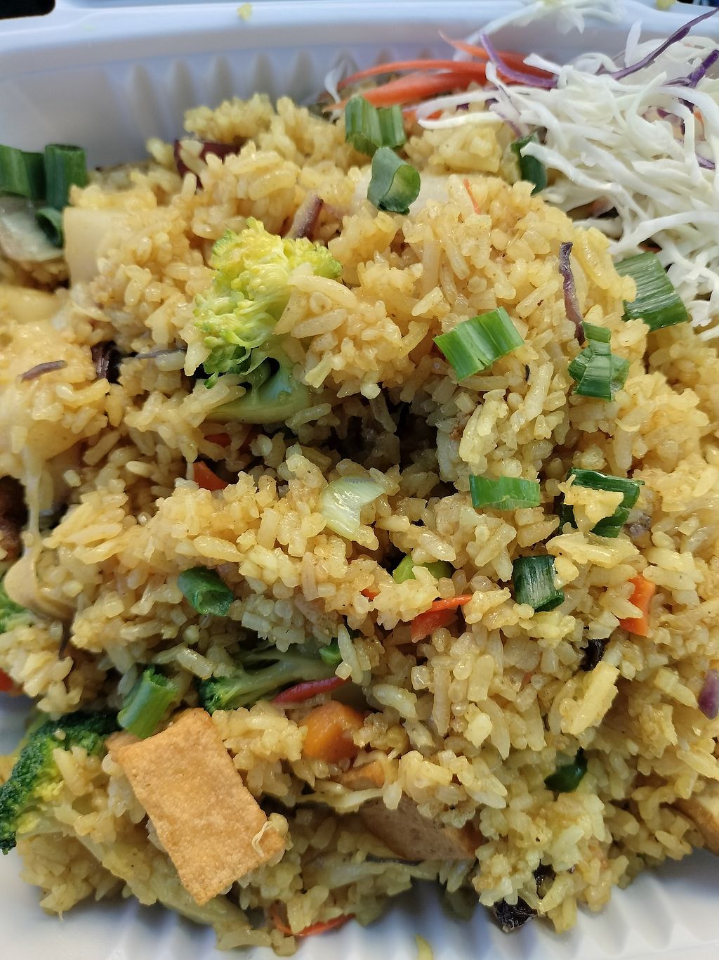 I tried to pineapple fried rice w tofu and mixed vegetables and it was so good and such a good portion size. They also have vegan boba tea w coconut milk! I tried Thai boba tea w coconut milk and I would definitely get it again.