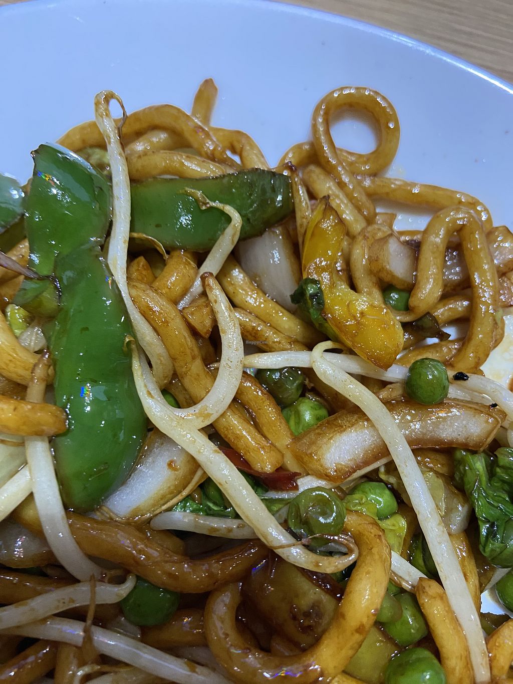 Garlic broccoli, spicy Bok Choi, spicy aubergines, chow mein and rice