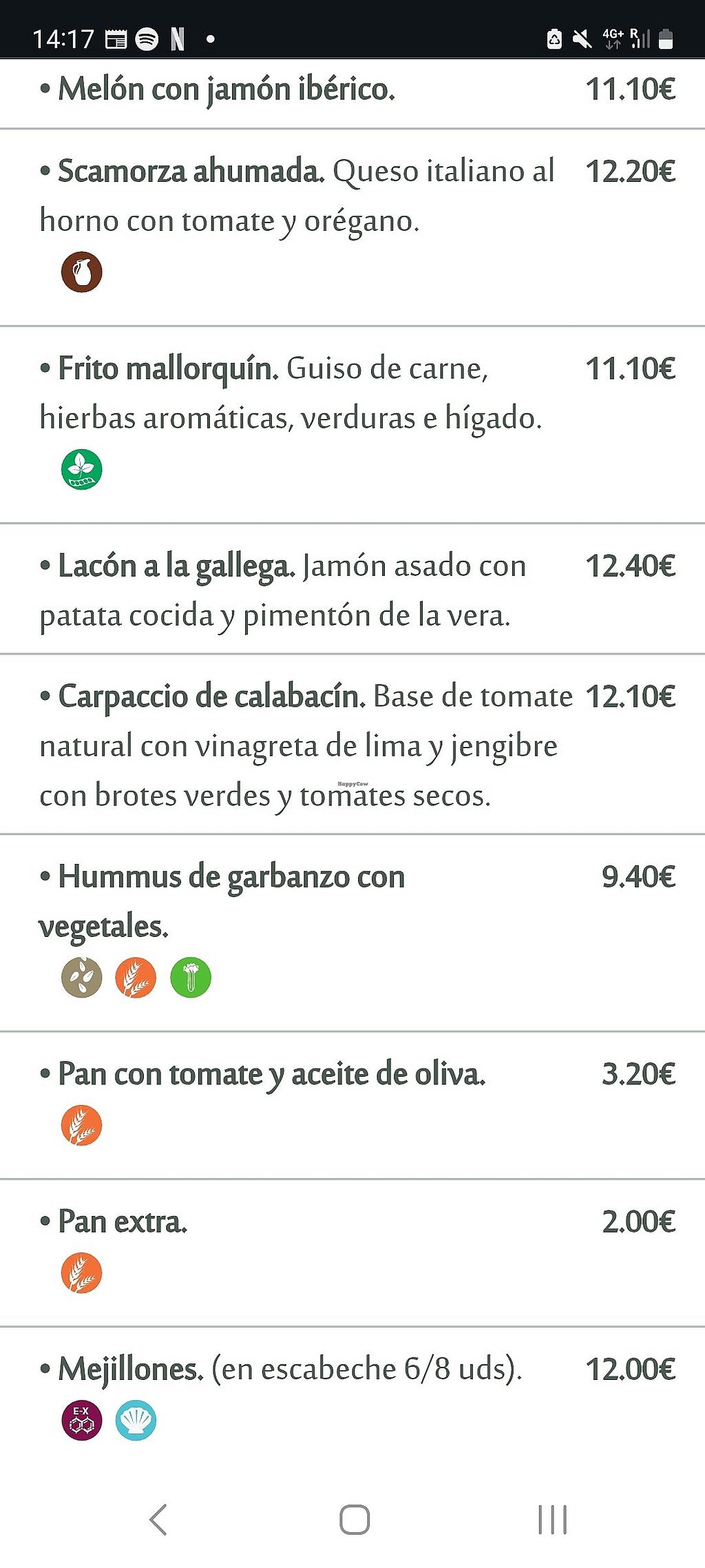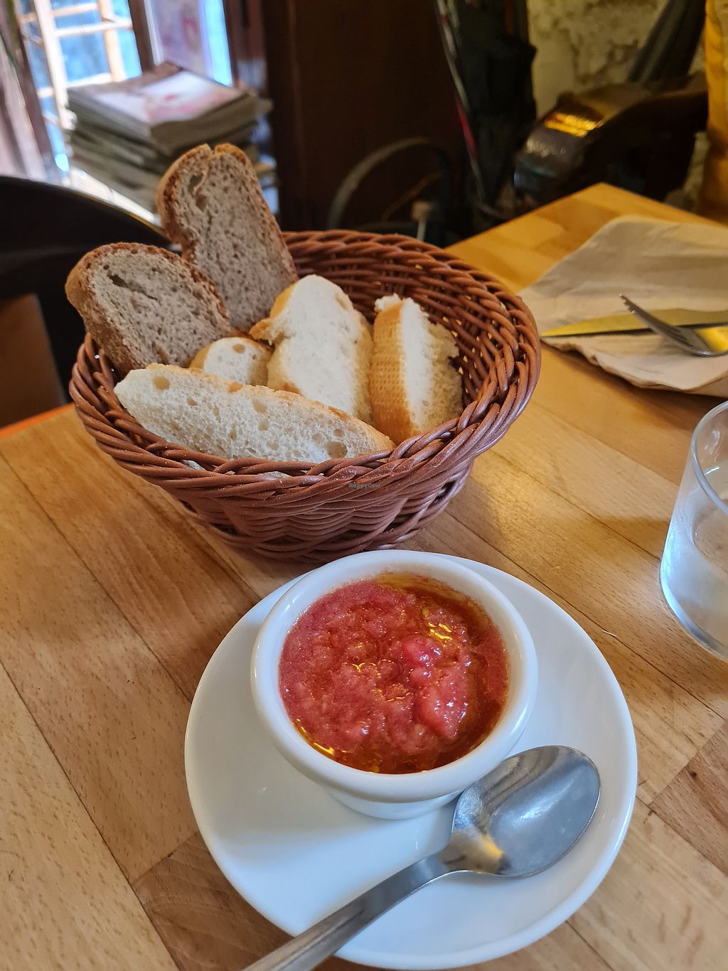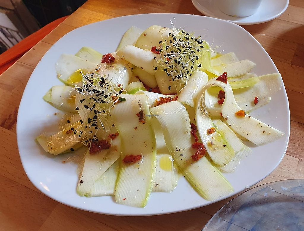 They just had two vegan options on the menu besides olives which were the hummus plate and the zucchini carpaccio. We also asked for bread and they brought us a tomate sauce to spread on. Food was average but overpriced. The vegan options weren't clearly marked on the menu. The staff was not super friendly.