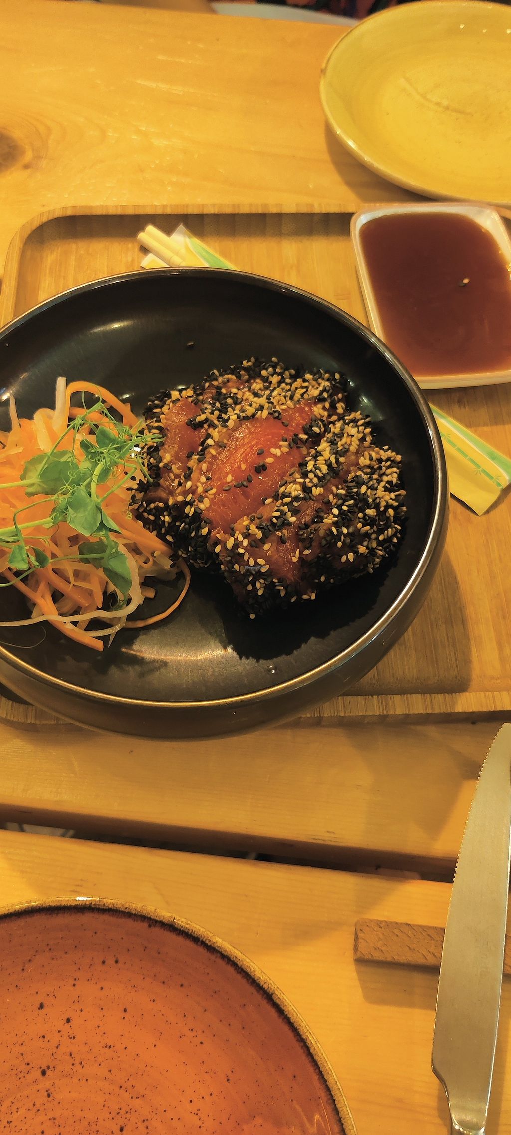 Cibo veramente di ottima qualità. Abbiamo ordinato un cocomero in salsa teriyaki ed è stato veramente inaspettato: buonissimo e con una consistenza incredibile. Il servizio un po' lento ma il posto ispira molta tranquillità. Consigliato, e il prezzo si allinea a ristoranti simili in zona