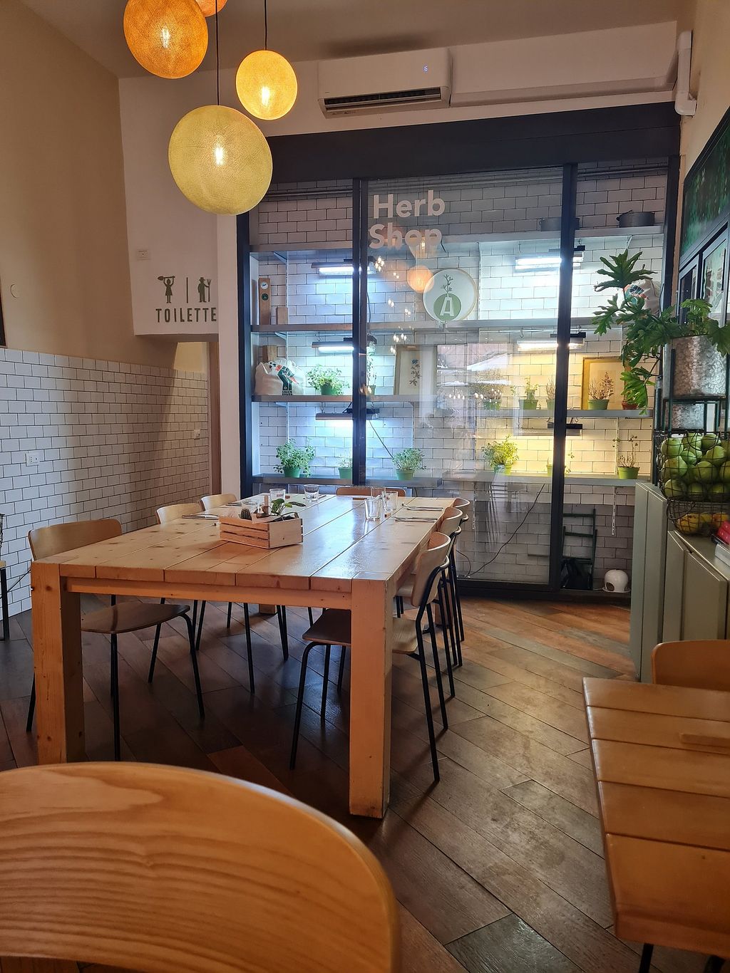 Small contemporary bistro with many vegan dishes, fresh juices and desserts. Plants and a few household items also for sale. Open Tue-Sun 12:00-23:00.