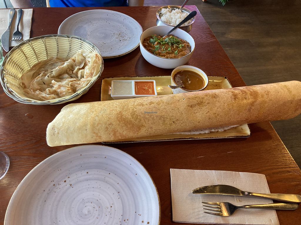To be completely honest, I didn't have high hopes because I've never had a decent Indian since coming here in February! The menu is next level. It's not your run of the mill menu - every dish has a description and is clearly marked as vegetarian or vegan option available. There are so many vegan options to choose from as mains, starters, breads and sides. You can specify the best you prefer which is good, the 'medium' was delicious with a kick. You must try the Dosas (the chef's speciality) and the breads. So good. Great service, great value. Will be heading back for sure.