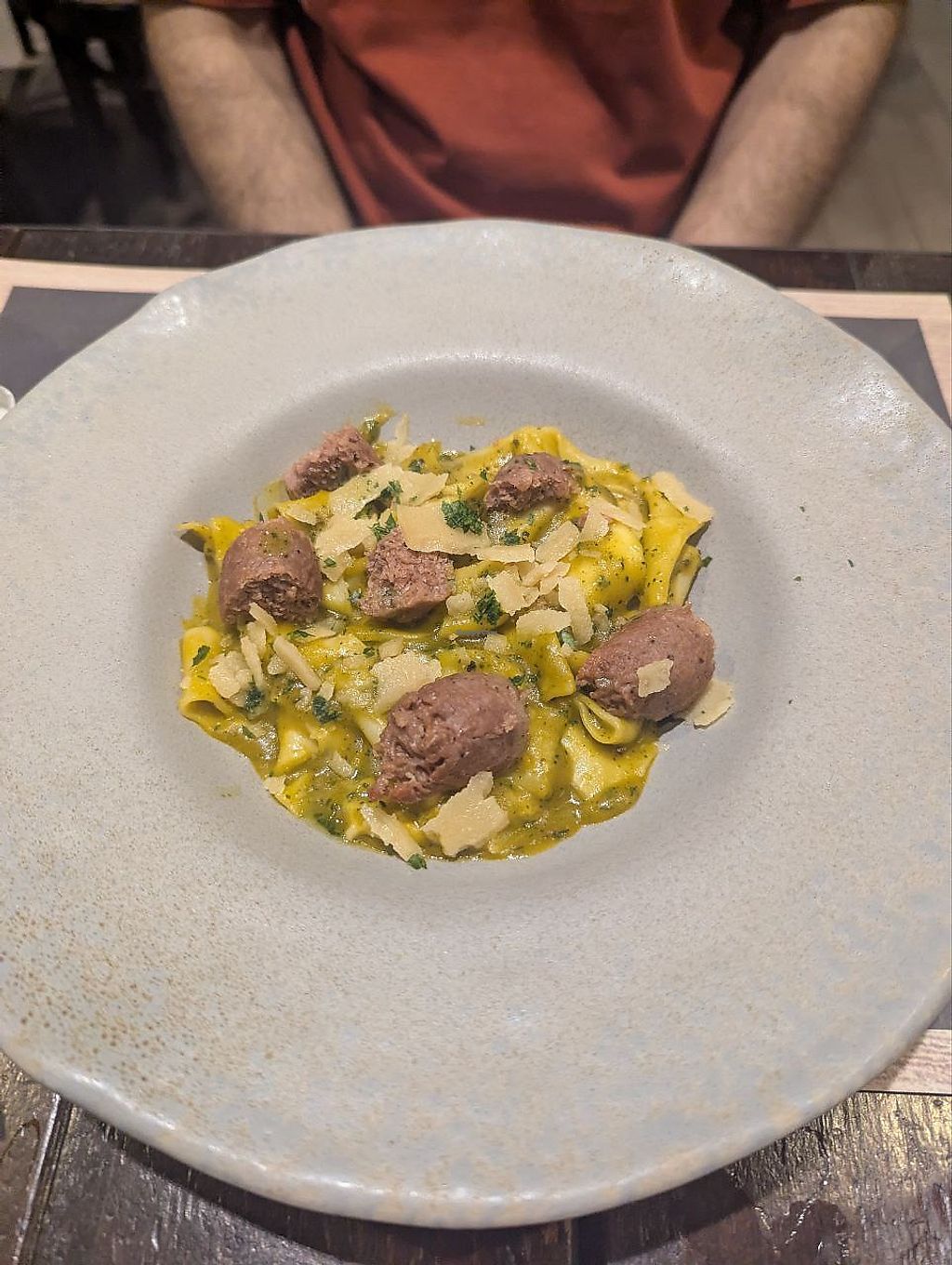 The pasta was truely amazing, especially the genovese and the pasta with pumpkin(possibly not available daily). The staff very friendly and welcoming.