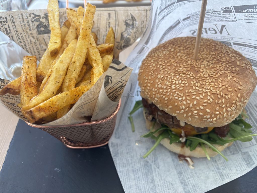 Serves meat, vegan options available. Portuguese restaurant with all kinds of dishes on the menu, including burgers and kebabs. Has a small vegan menu with nine choices, including a vegan hamburger, kebab, vegan nuggets, pasta, salad, vegan stroganoff and a vegan wrap. Open Tue-Sat 12:00-23:00. Closed Sun & Mon.
