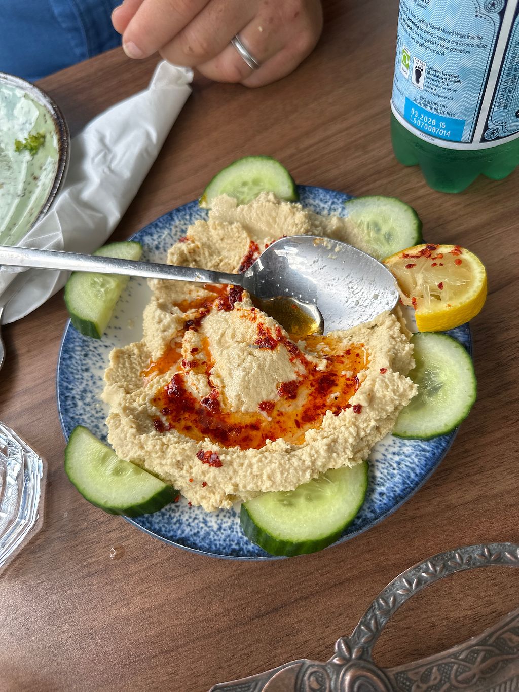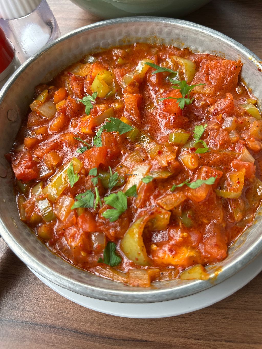 Although not a vegan restaurant, this Turkish/Kurdish place is welcoming and the staff are happy to point out what can be veganised. Today we had the Hummus, Broccoli Salad plus a Menemen with the traditional egg. Slurpage comprised sparkling water and the, once again traditional, Turkish coffee.