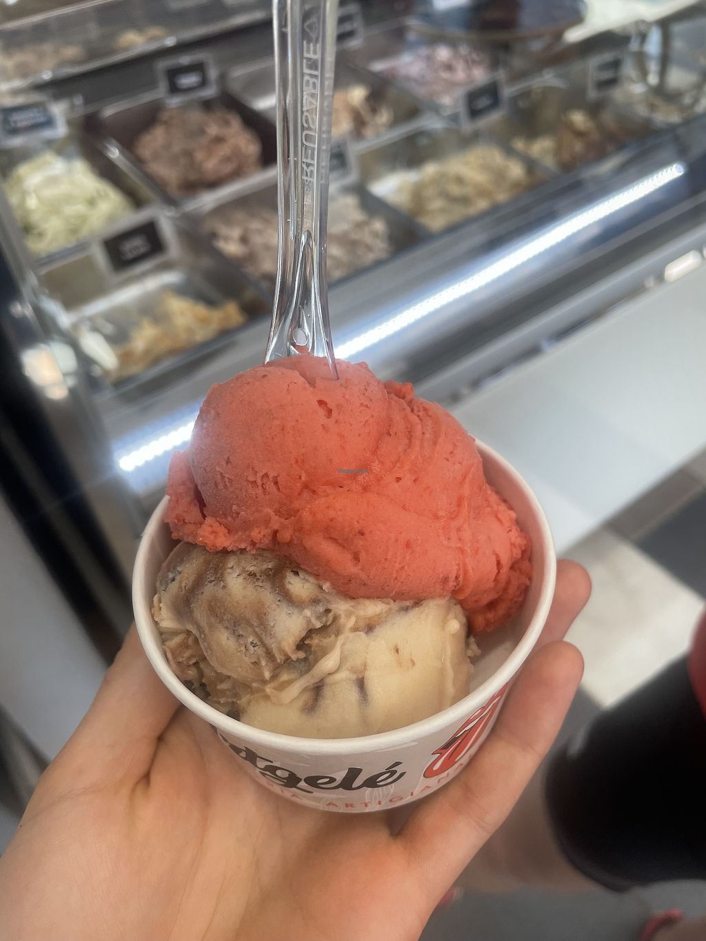 The man was a bit confused about what vegan meant but after explaining it to him we understood each other. I found many fruit flavours and a lactose-free version of nutella ice-cream, which happened to be vegan. Really tasty, unfortunately they don’t have vegan cones.