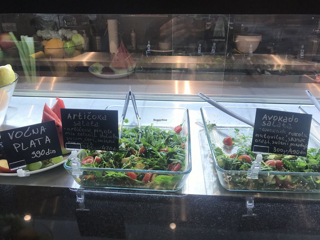 Fruit platter, artichoka salad, avacado salad