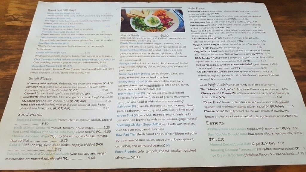 Long list of vegan options on the menu. Food was ok..the smoothie bowl is very runny, like a soup. The cheezcake was frozen and very hard to eat. The sweet potato fries are tiny portion only. Avos on avo toast were verh hard.