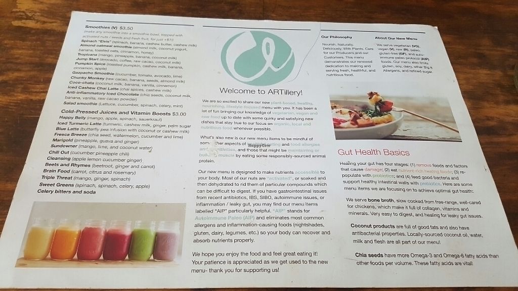I went to ARTillery and had their vegan breakfast burrito and pink lady fresh squeezed juice. Both were delicious. Staff and service were great also. Highly recommended!