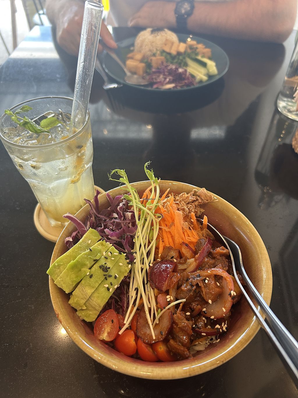 Iced Blue Coffee & Passion Fruit/Pineapple Smoothie