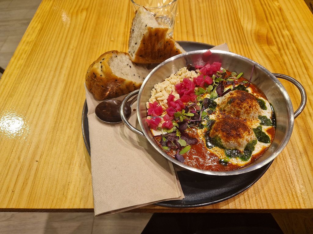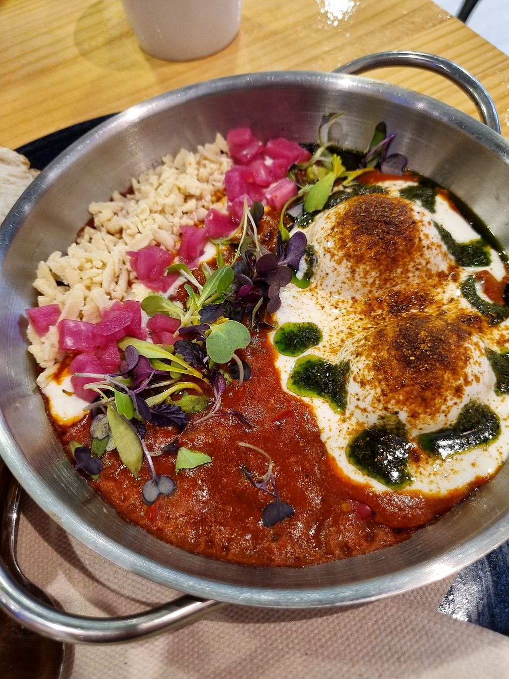 Shakshuka” “eggs” with focaccia ! Surreal!