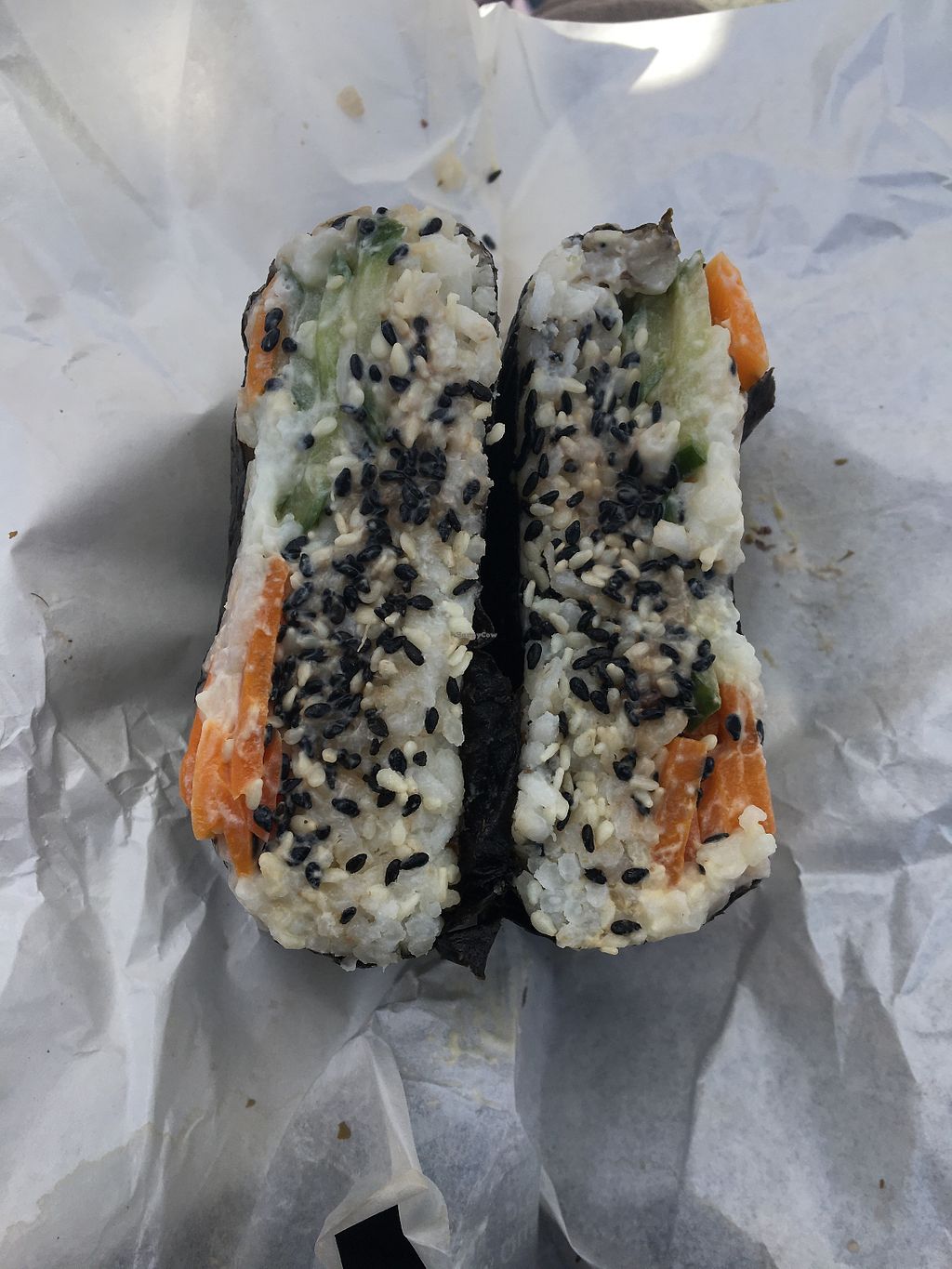 Vegan take-out restaurant located within the Passage Sainte-Anne. Serves four different kinds of onigirazu with seasonal & local fillings. Reported closed November 2023.