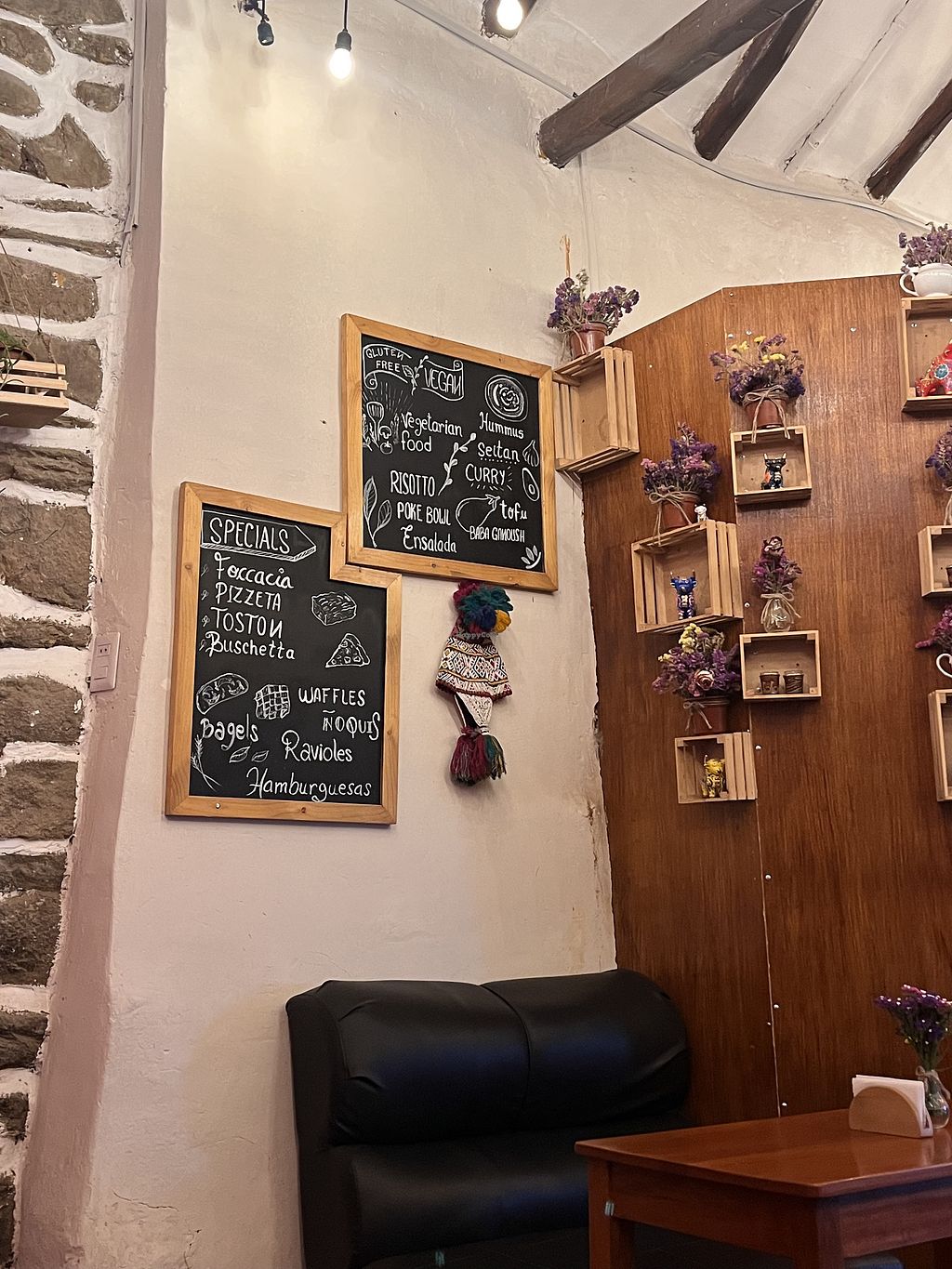 We came here for dinner one night after a long day. It wasn’t super easy to find solid vegan options in Ollantaytambo but this cafe advertised on their signs that they have them and we were glad to have stumbled upon it. I had a really great empanada and my partner had a burger. They have several other vegan options as well, but we wanted a lighter meal that night. Service was very lovely.