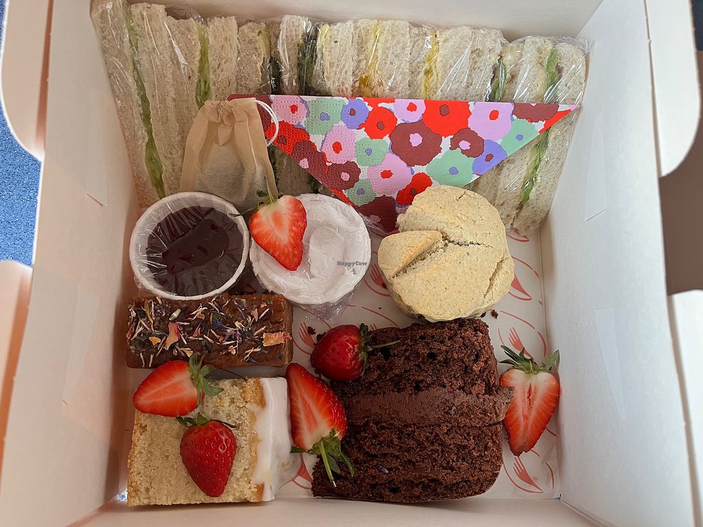 The vegan afternoon tea was lovely, great selection of tasty sandwiches and homemade cakes and warm scones, too much food for one sitting so took the leftovers home for later😄