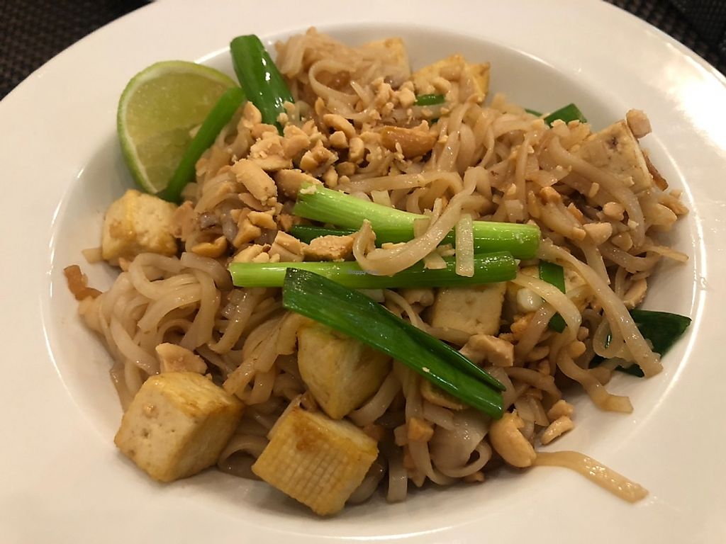 The Pad Thai can be made vegan if you ask. there were three vegan meal options when we visited and the Pad Thai was the best. Peach and Passion fruit bubble teas are vegan too.
