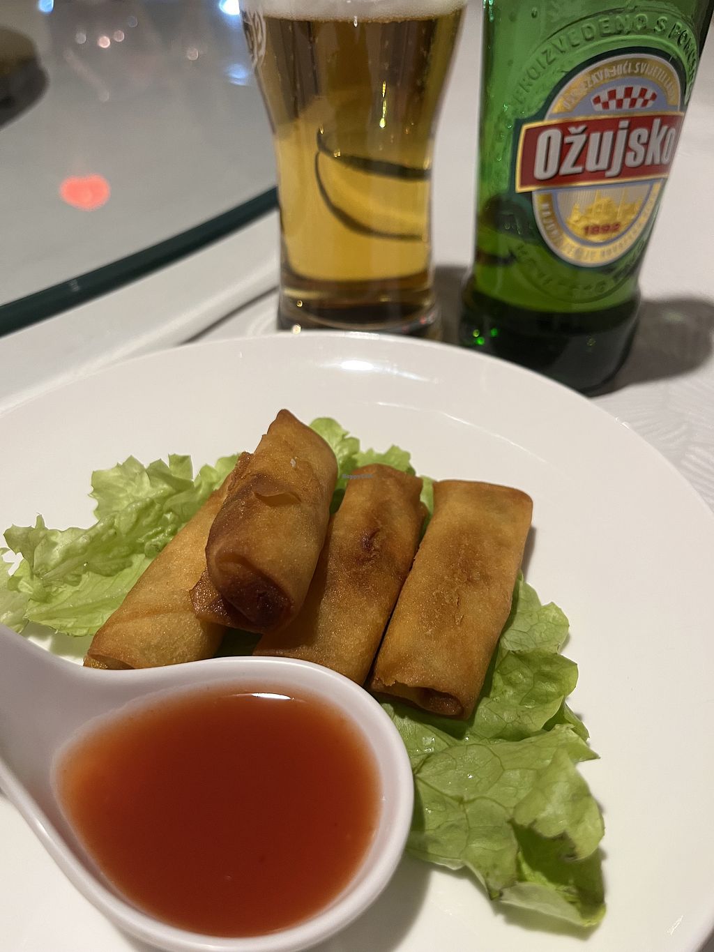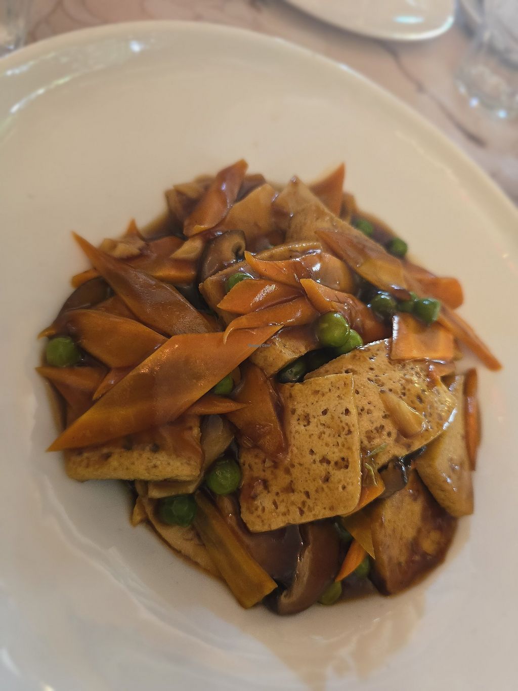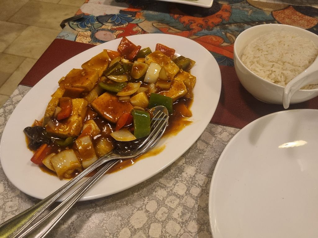 Tofu Szechuan and boiled rice. Fully vegan and really yummy.