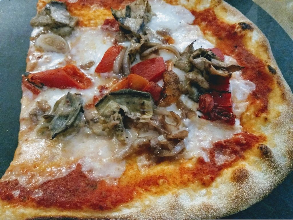 The garlic bread and homemade vegan lemonade were great. The pizza was average but there were many vegan topics and quite a few options which was nice