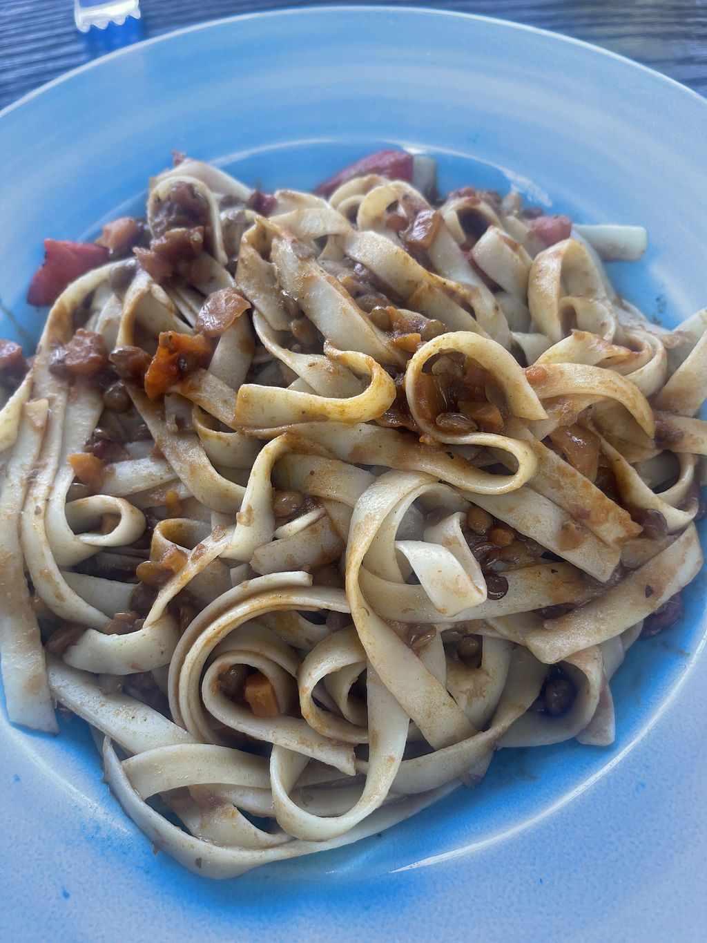 Got vegan lentil ragu which was really delicious and garlic bread. Good food and good service!