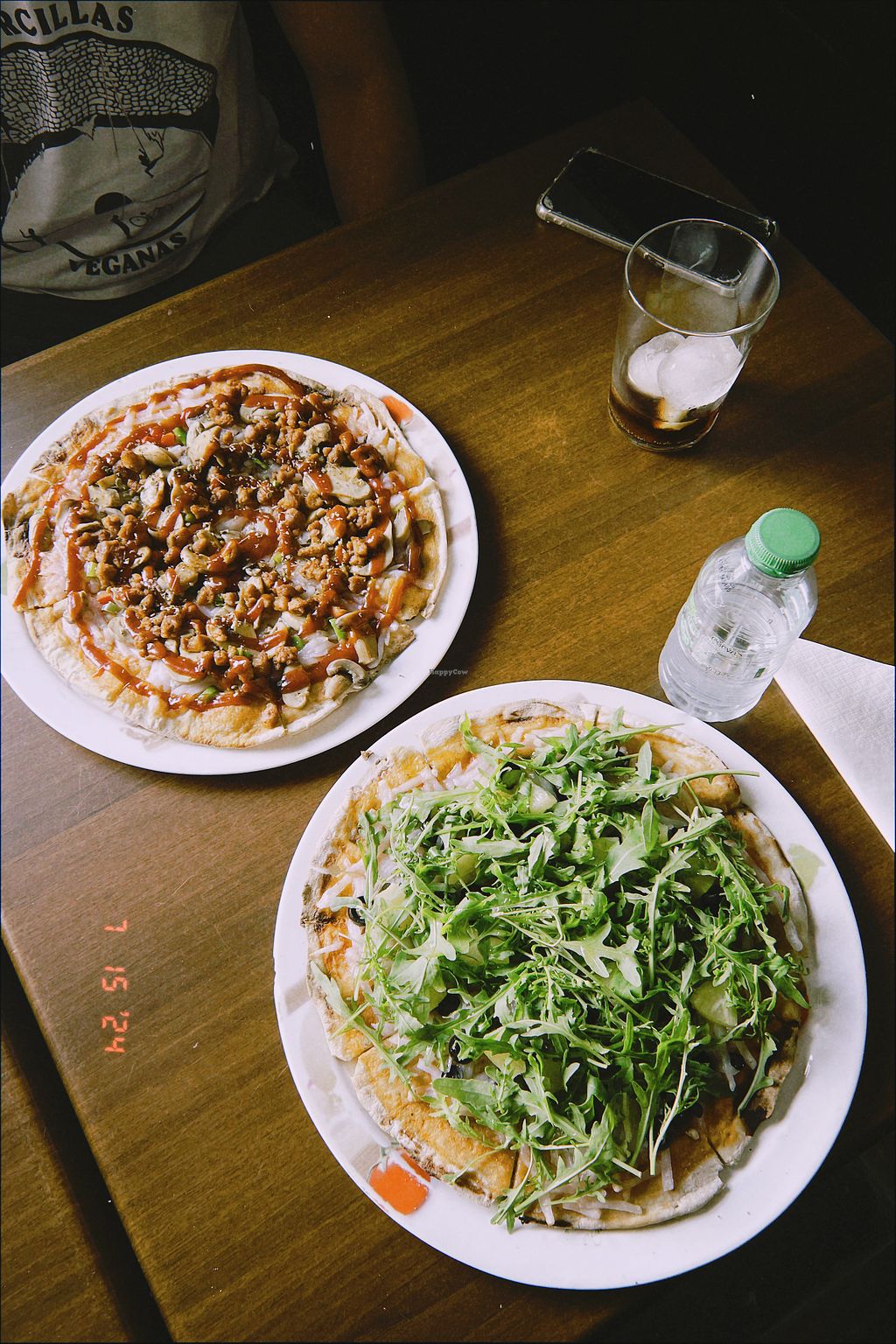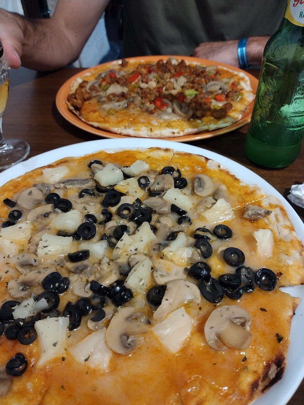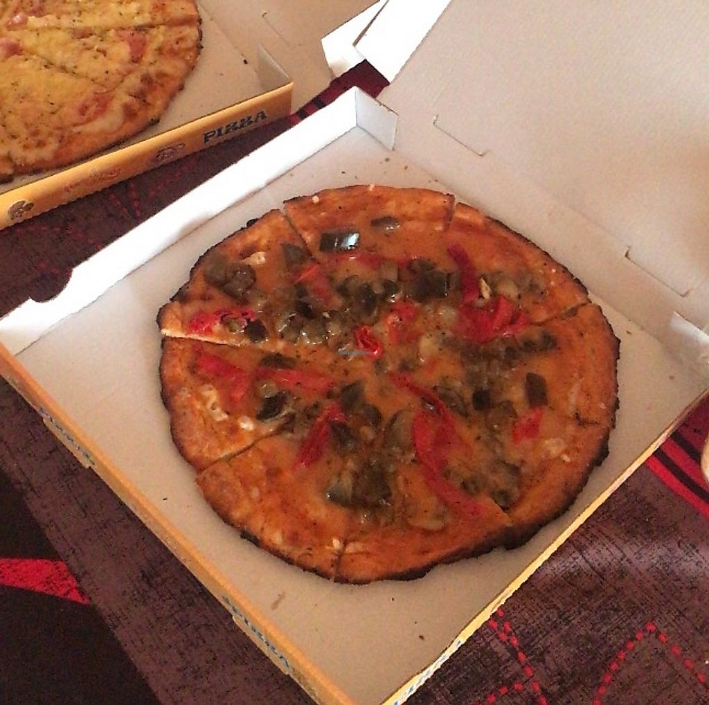 Pizza vegana con pimientos de piquillo, champis y cebolla