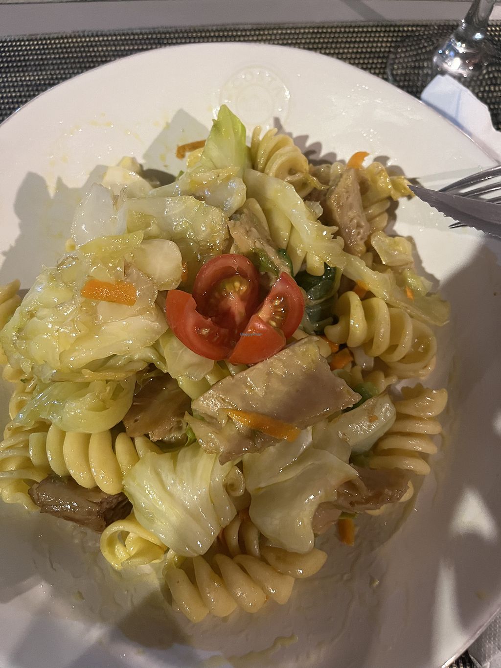 Just like the other reviewers said, this restaurant only has this vegan dish - fusilli with fresh mushrooms, cabbage, and heura. Not tofu, as it appears on the menu. In my opinion, that was a better choice. Heura bits are amazing! I would have preferred this dish with a bit of garlic and some spices, like black and chilli pepper, but it was still very good.